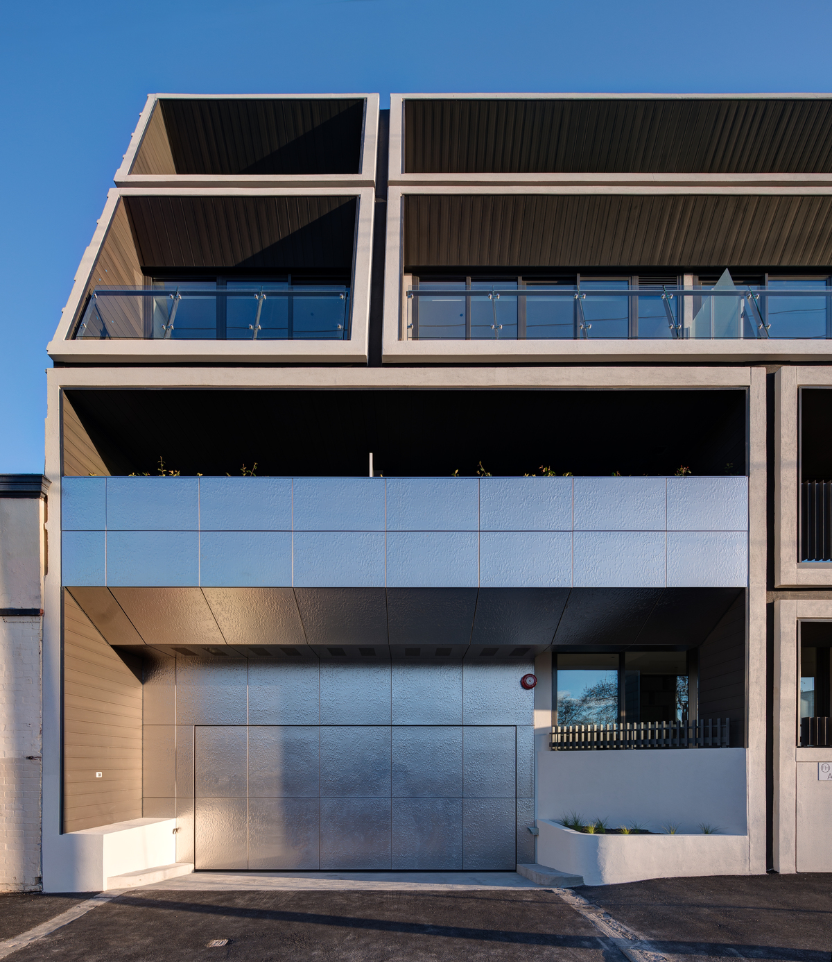 The rectangular shapes of the building were sliced, providing a gradual set back to Arden Street.