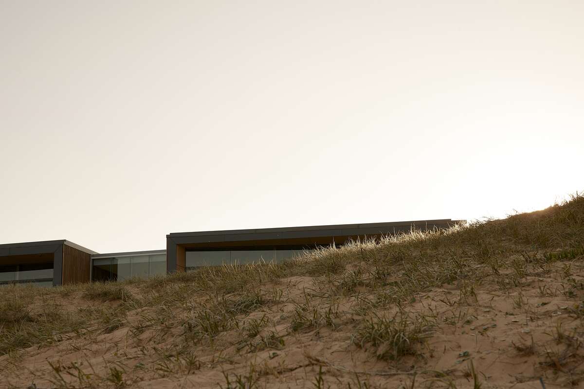 The three elevated, glass pavilions are angled to capture the views and beauty of the beach and headlands. From within, the interior design rewards visitors with a rich experience too.