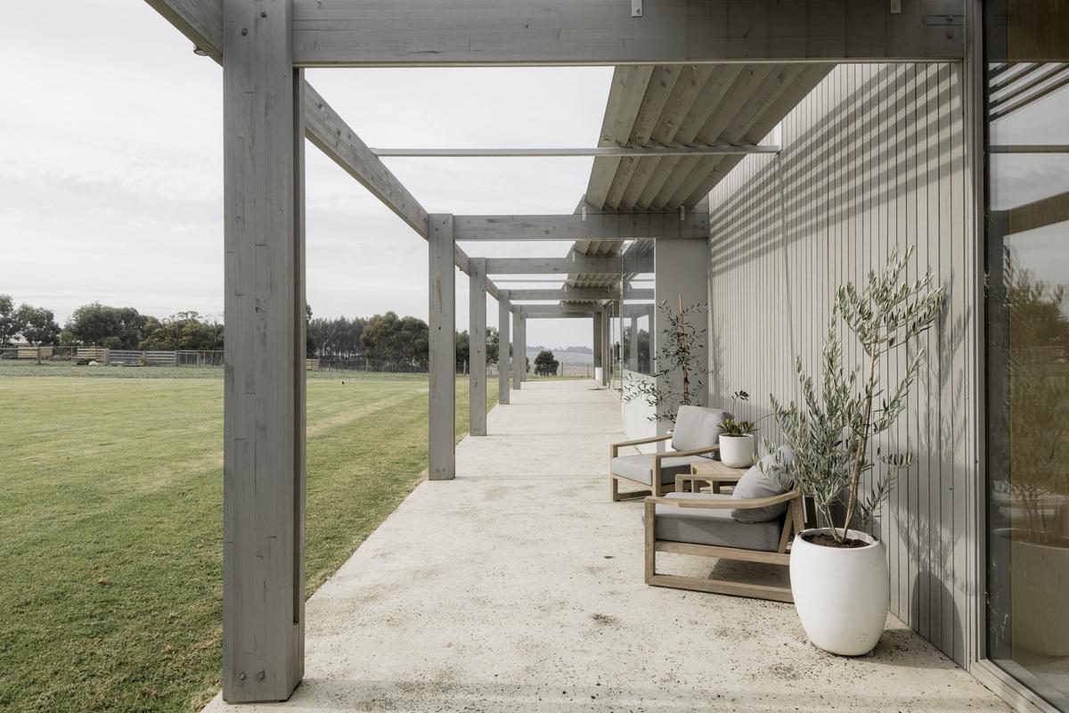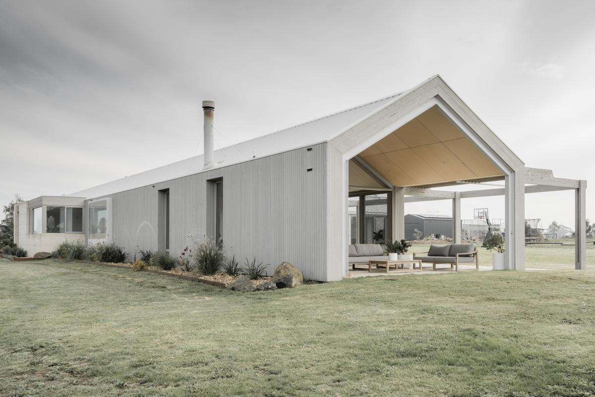 Designed to respond to its expansive site, it draws reference to surrounding agricultural shed structures in the area.