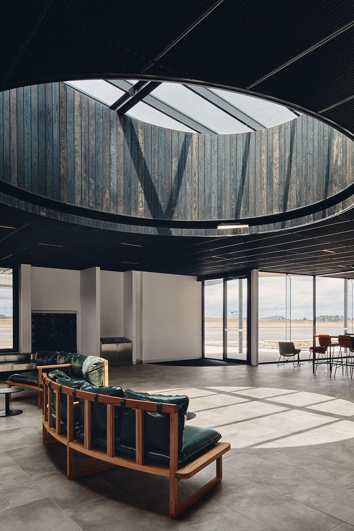 Linking this identity with the terminal is a dramatic circular skylight over the arrivals hall, abstractly reminiscent of the atmosphere created at the nearby Umpherston Sinkhole.
