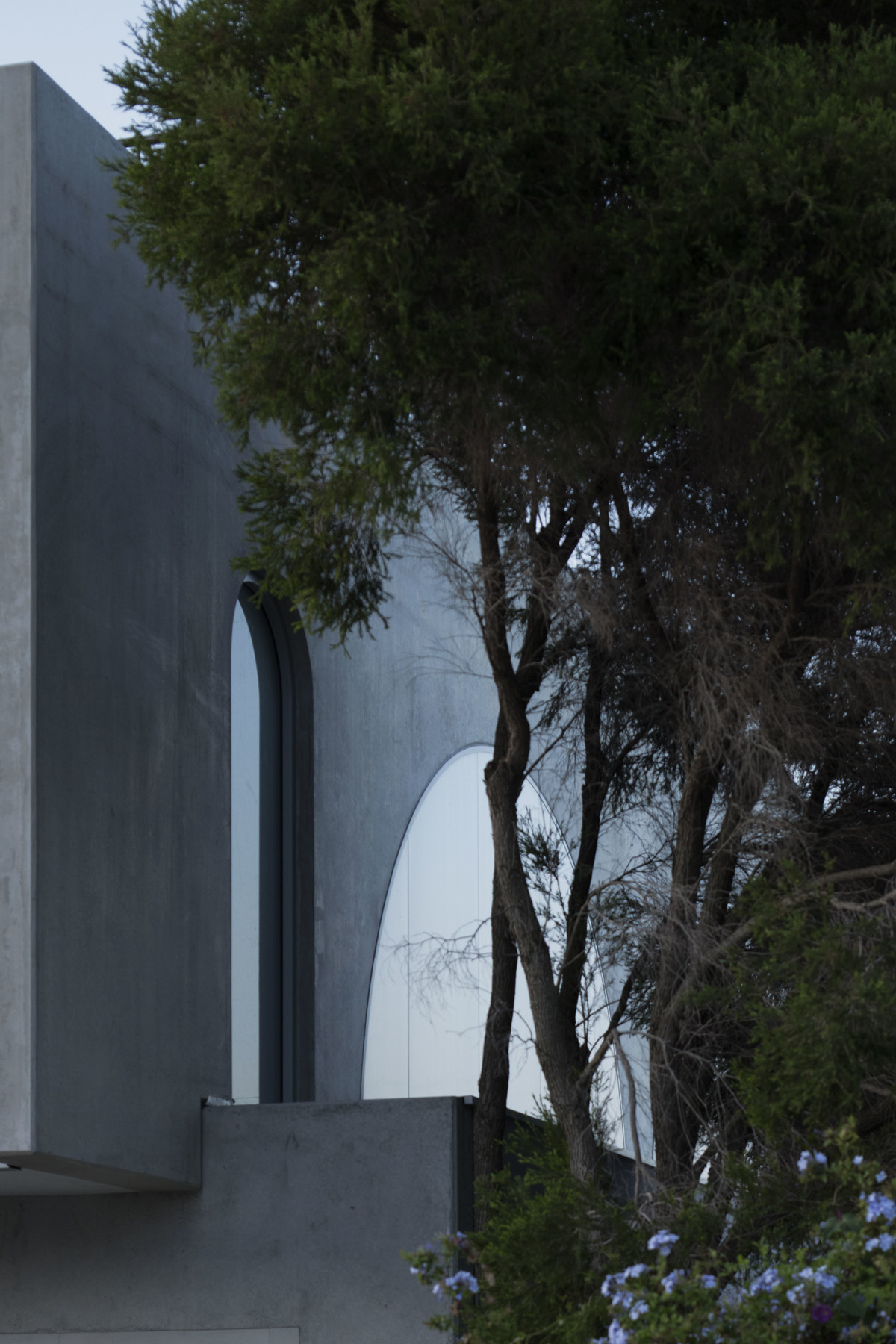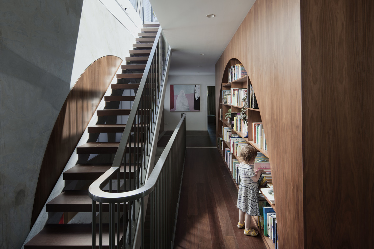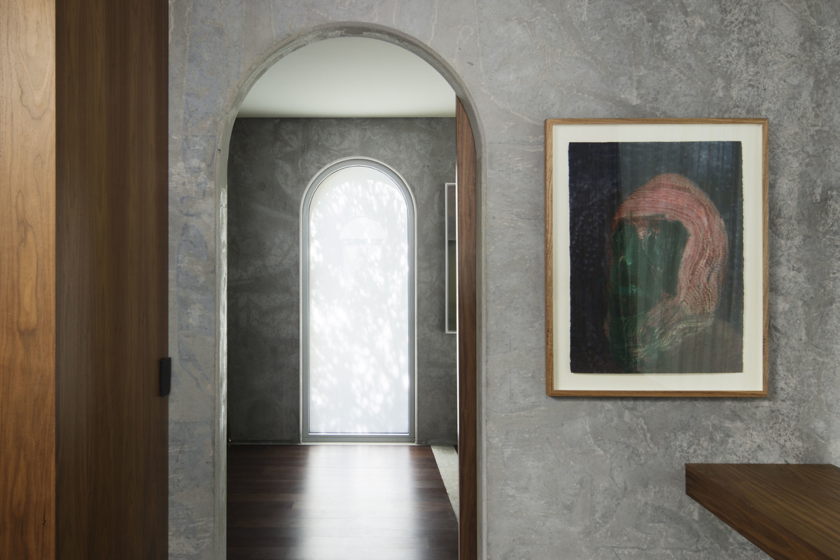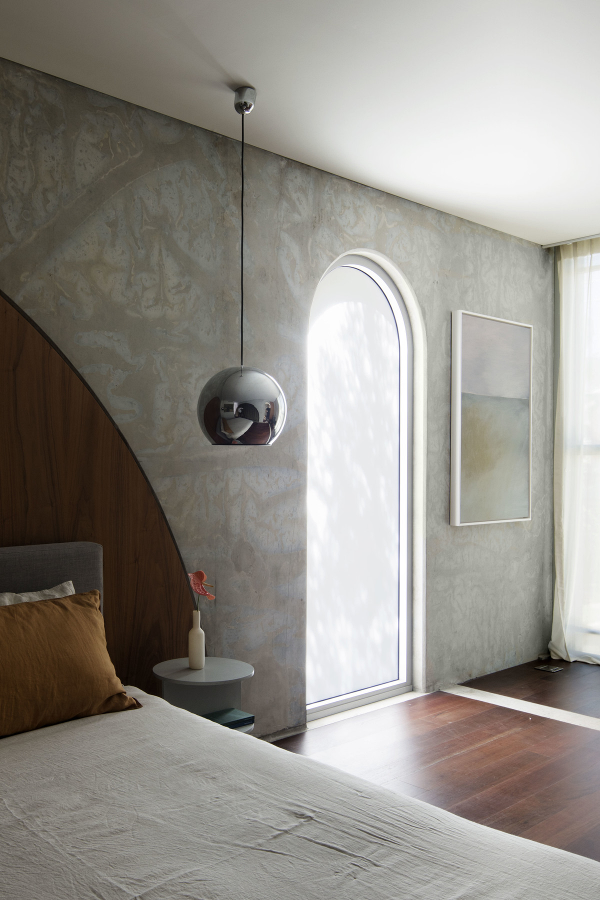 The grand arch is provided for the more significant gestures in the house – prospect from the kitchen, a sun-shade to the rear, a hidden robe, and a gallery window.