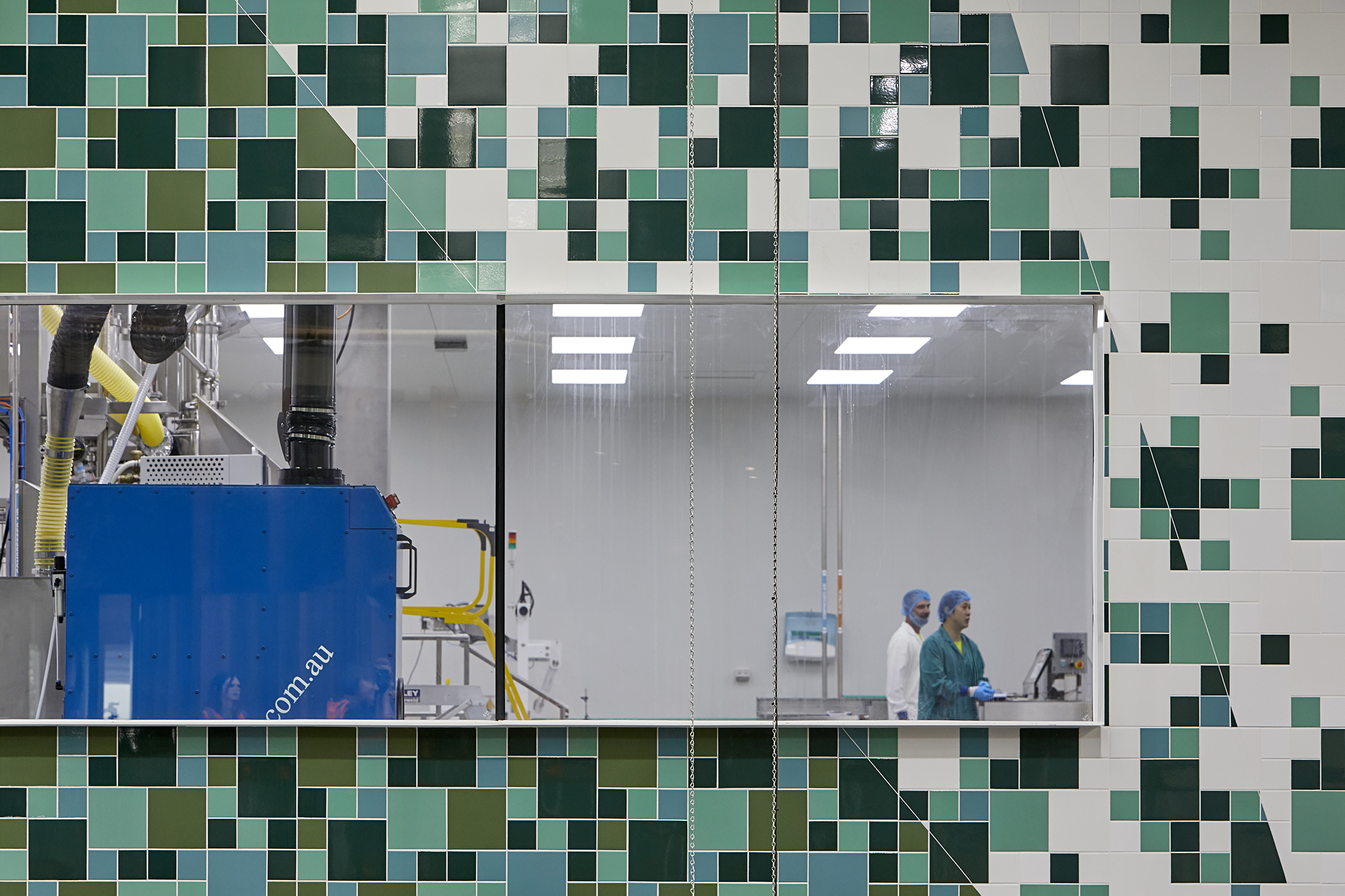 The project creates an engaging and vibrant work environment, the antithesis of the sterile and oppressive environments typically associated with production facilities.