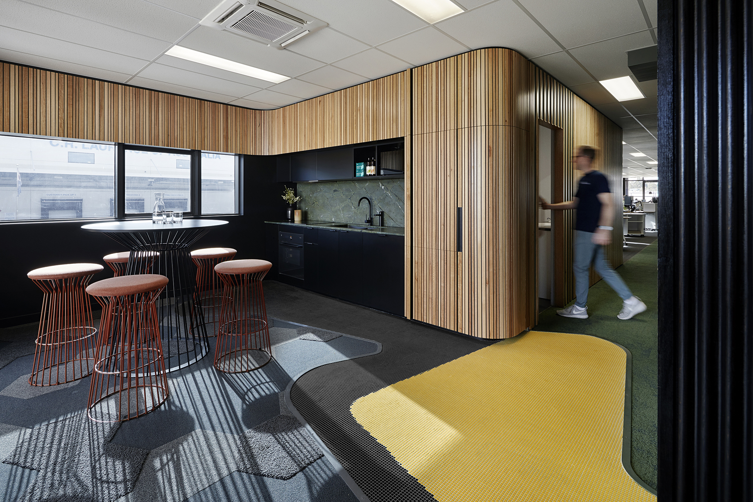 The creation of an inspiring work environment that represented the natural ethos of the company was an essential part of the brief. BENT Architecture’s approach was to take the spirit of the surrounding natural world and weave it through the interior of the existing warehouse shell, using colour, texture and organic forms to create an uplifting and exciting space, bringing a smile to employee’s and visitor’s faces alike.