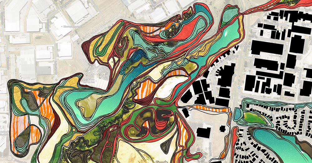 Harnessing the vegetative spirals of Hundertwasser, the spirit of the landscape – expressed through colour and texture – is encouraged to flow from the nearby indigenous reserve into the interior of the production facility.