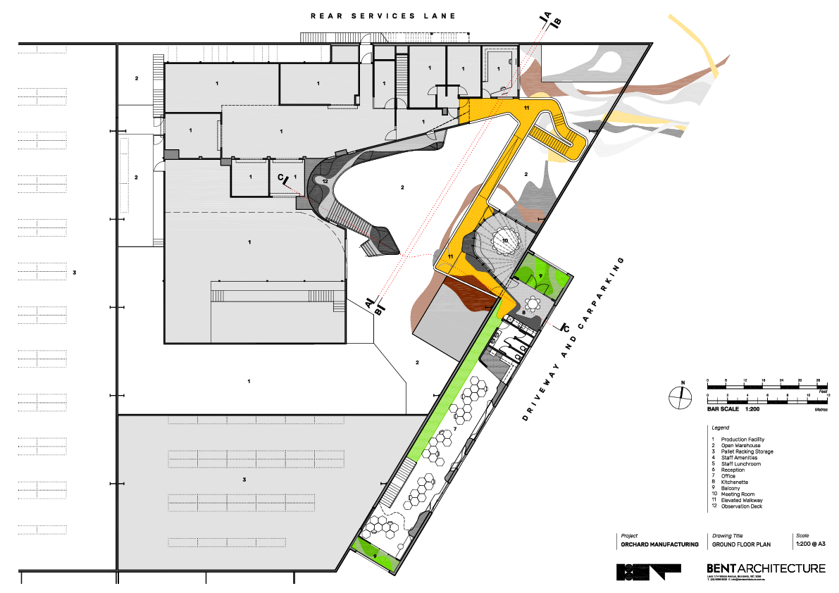 BENT Architecture’s brief for this project was to create an innovative and engaging workplace that would not only meet the practical needs of a new production facility for Orchard Manufacturing, but would also reflect the natural origins of the company.