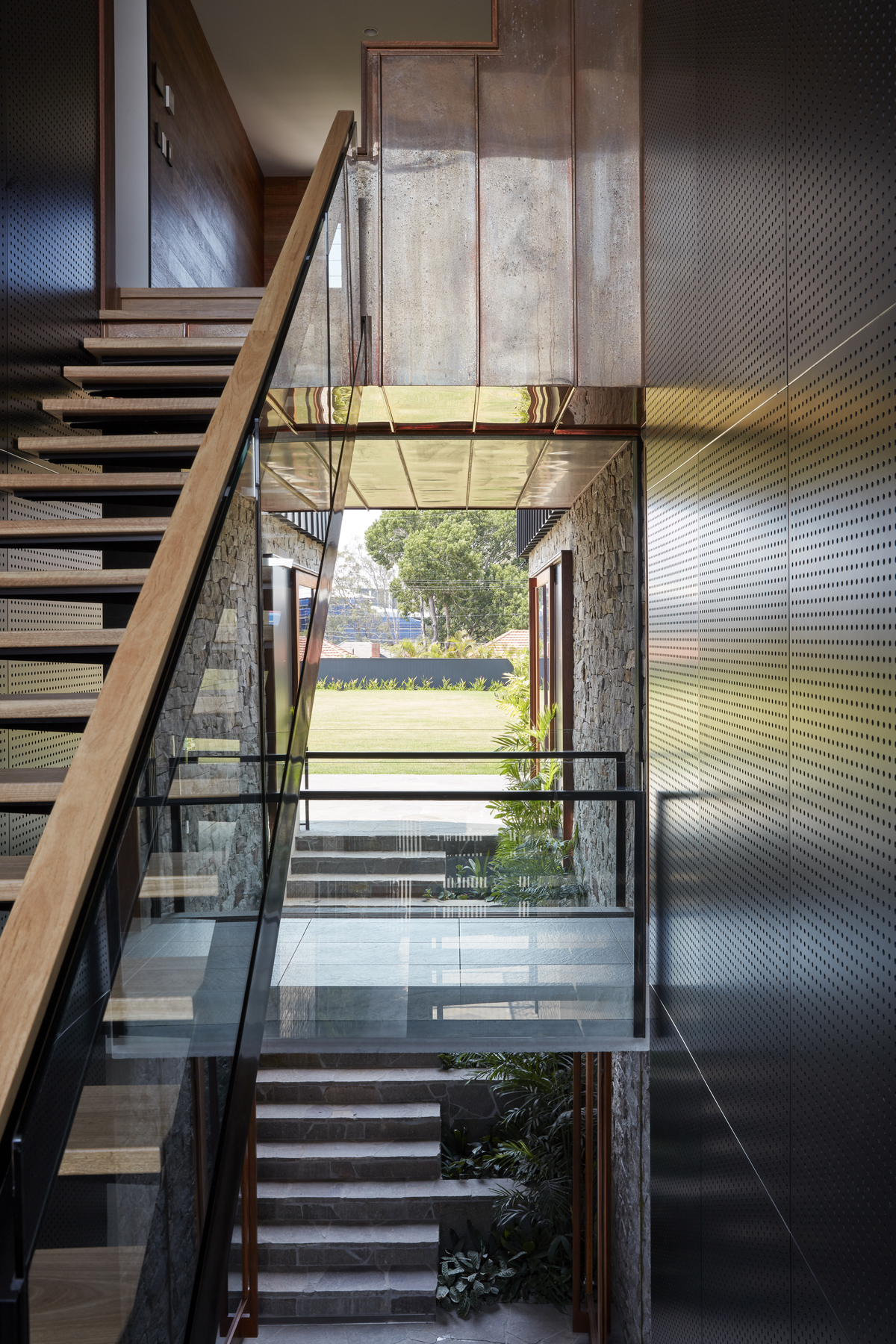 And a suspended copper box to the south articulates the primary circulation zone.