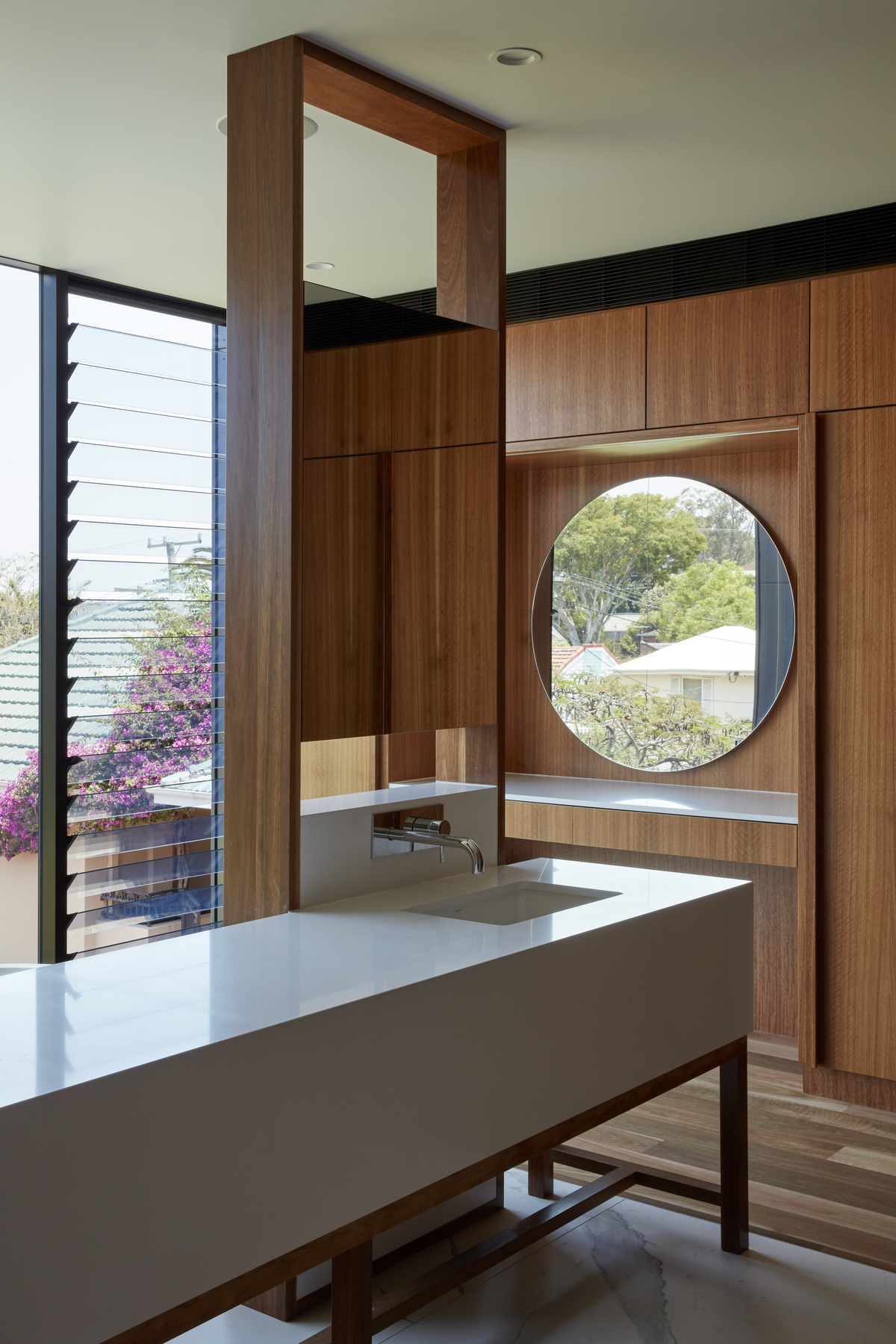 Carefully crafted bespoke joinery was customised throughout to suit the specific needs of Tim Stewart Architects’ client and the way they want to live.