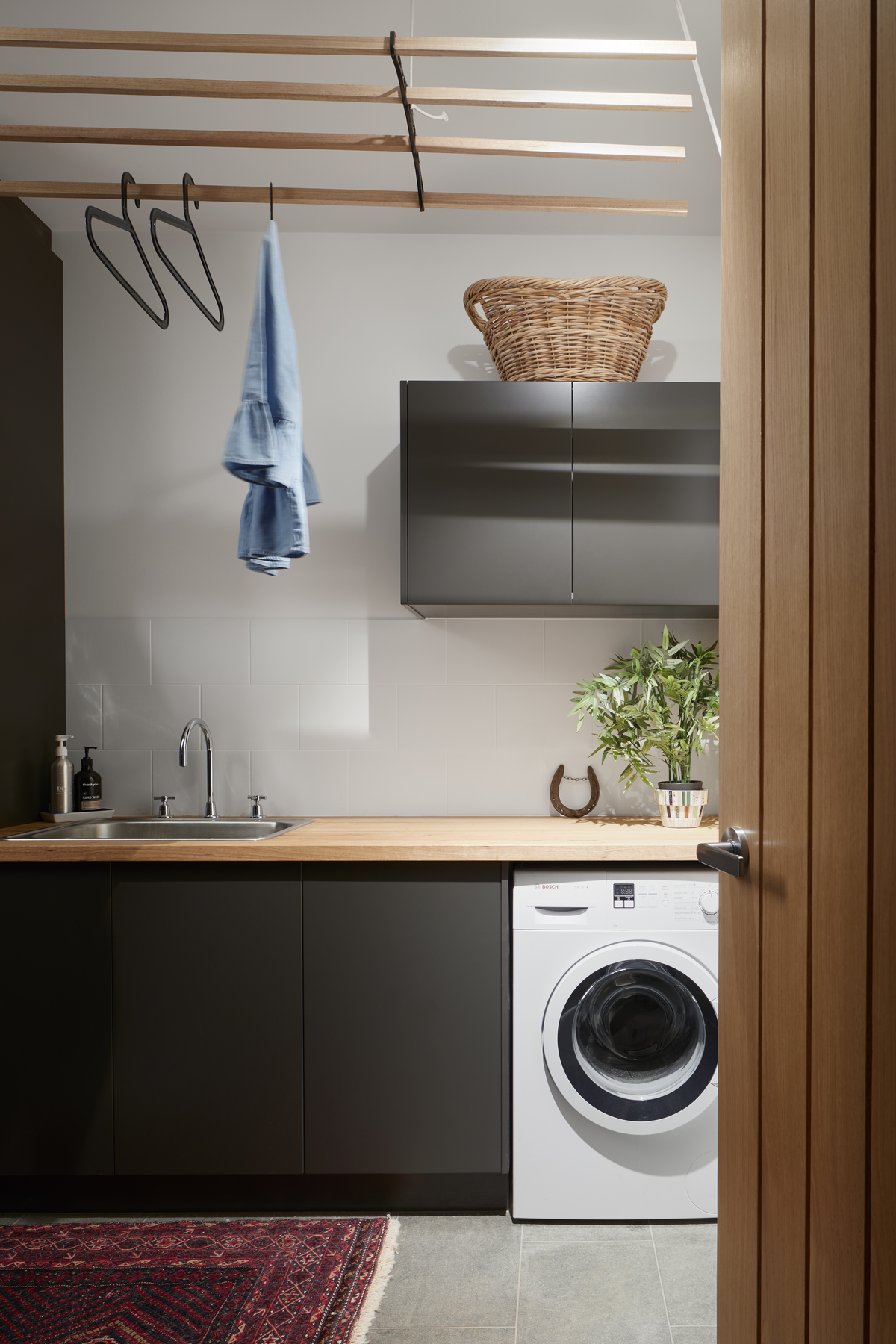Rather than just being ‘tin sheds’, lovely radial-sawn native timber cladding was introduced to complement the grey corrugated steel, and soften the overall feel of the home and create that connection back to the surrounding bushland.