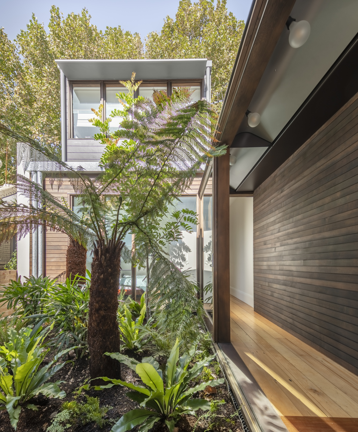The courtyard provides both a vital burst of natural light to the centre of the site as well as screening windows to the neighbour’s home through native Australian vegetation.