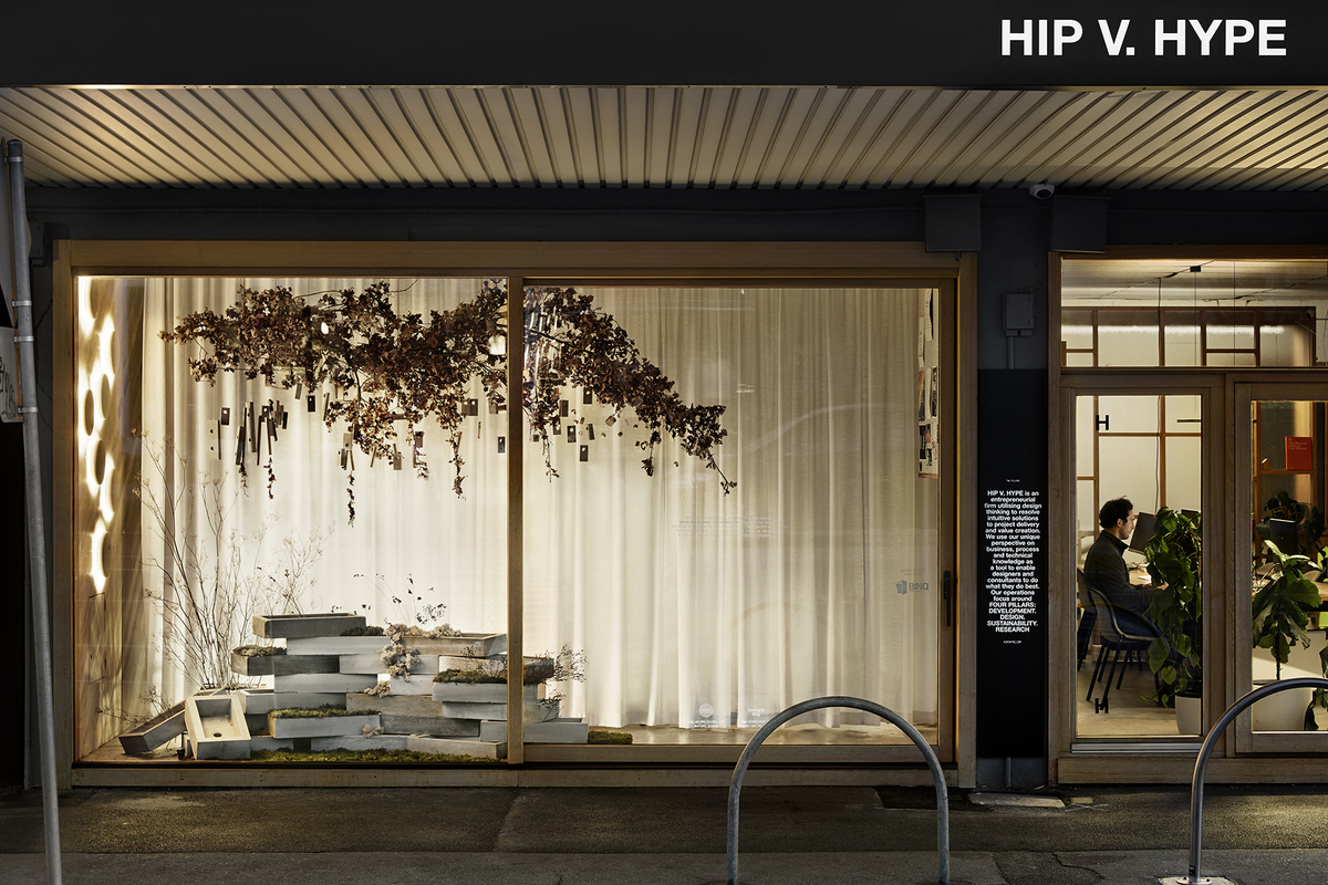 The installation inside is a collaboration between Wood Melbourne and Georgie Boy, enabled by HIP V. HYPE.