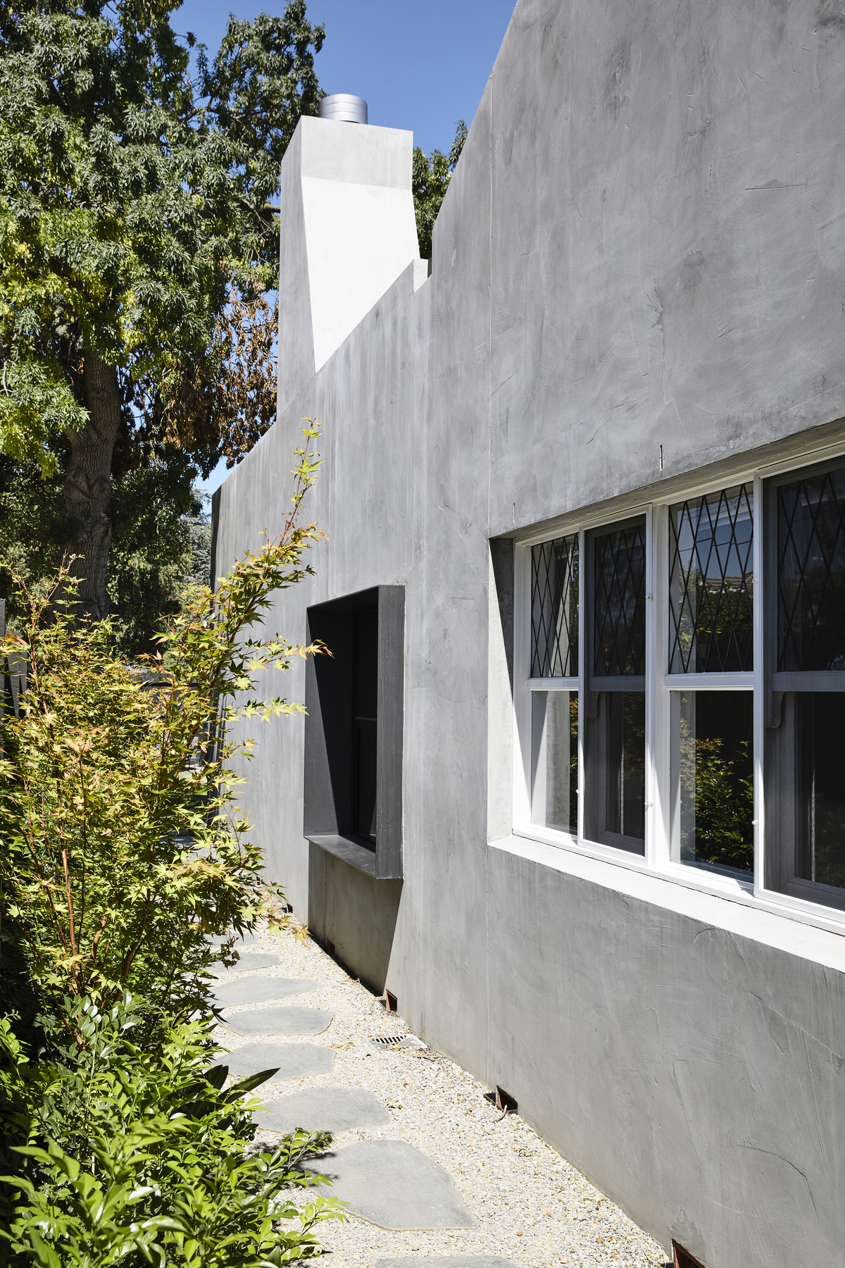 This provided a surface that was then rendered both outside and inside with a concrete finish that clearly differentiated this section of the house from the original house.