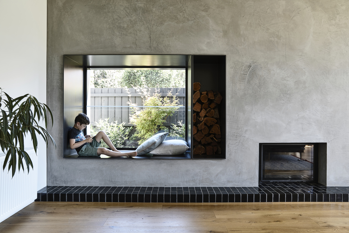 Its position orientates the view towards the backyard when entering the space from the entry hallway, yet provides transparency when looking across the space from the kitchen.