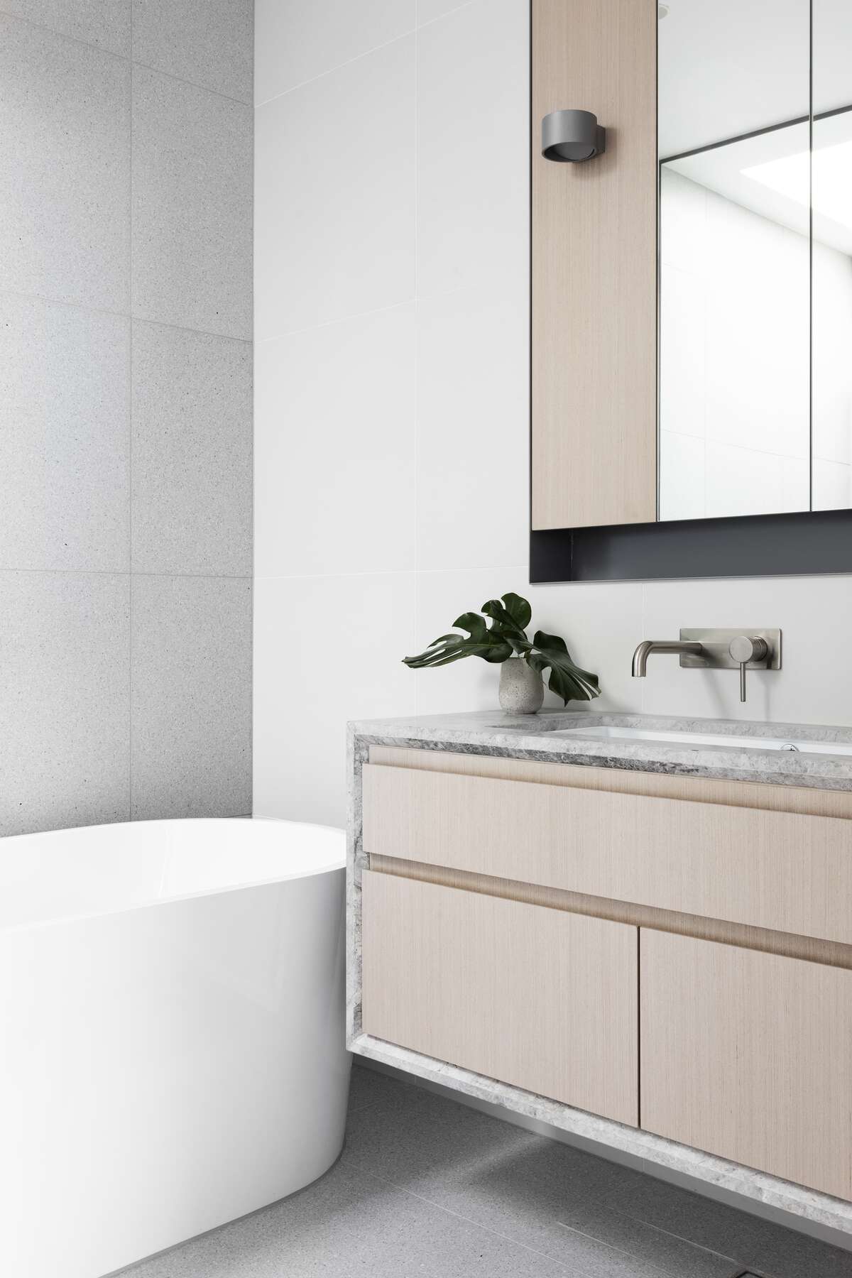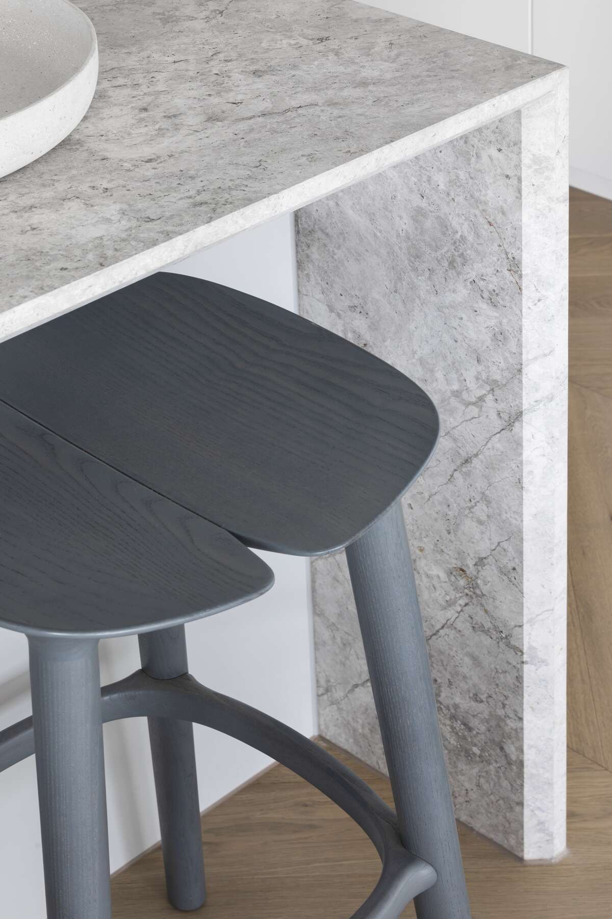 An abundance of natural light fortifies the balanced palette of finishes, featuring natural textures and tones.