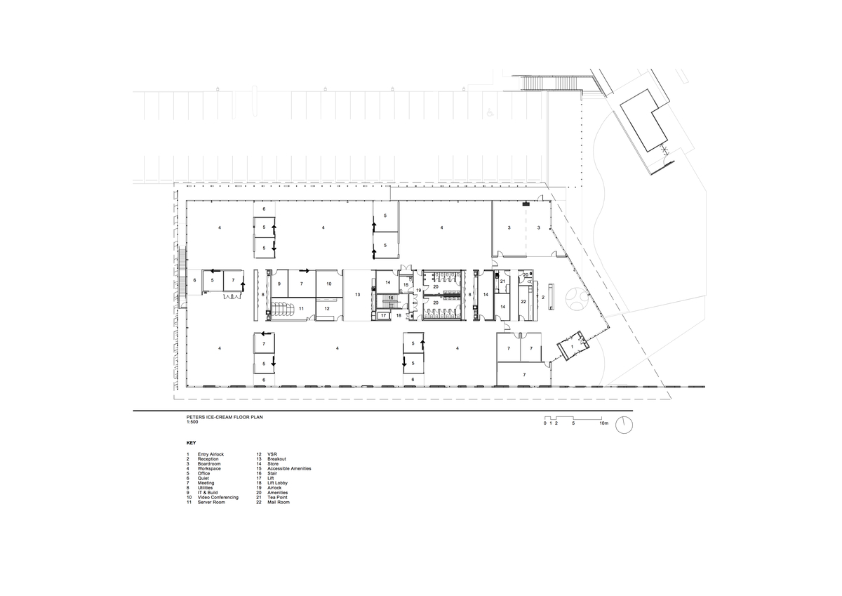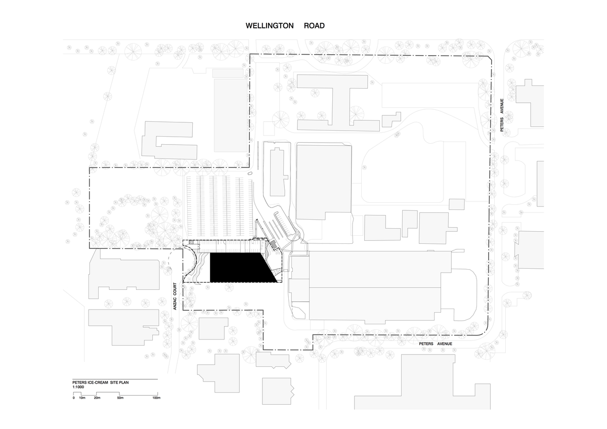 Wanting to have its own ‘voice’, as much as responding to the original collection of factories and office once occupied by Peters Ice Cream, this latest addition beckons those arriving at the Wellington Road address.