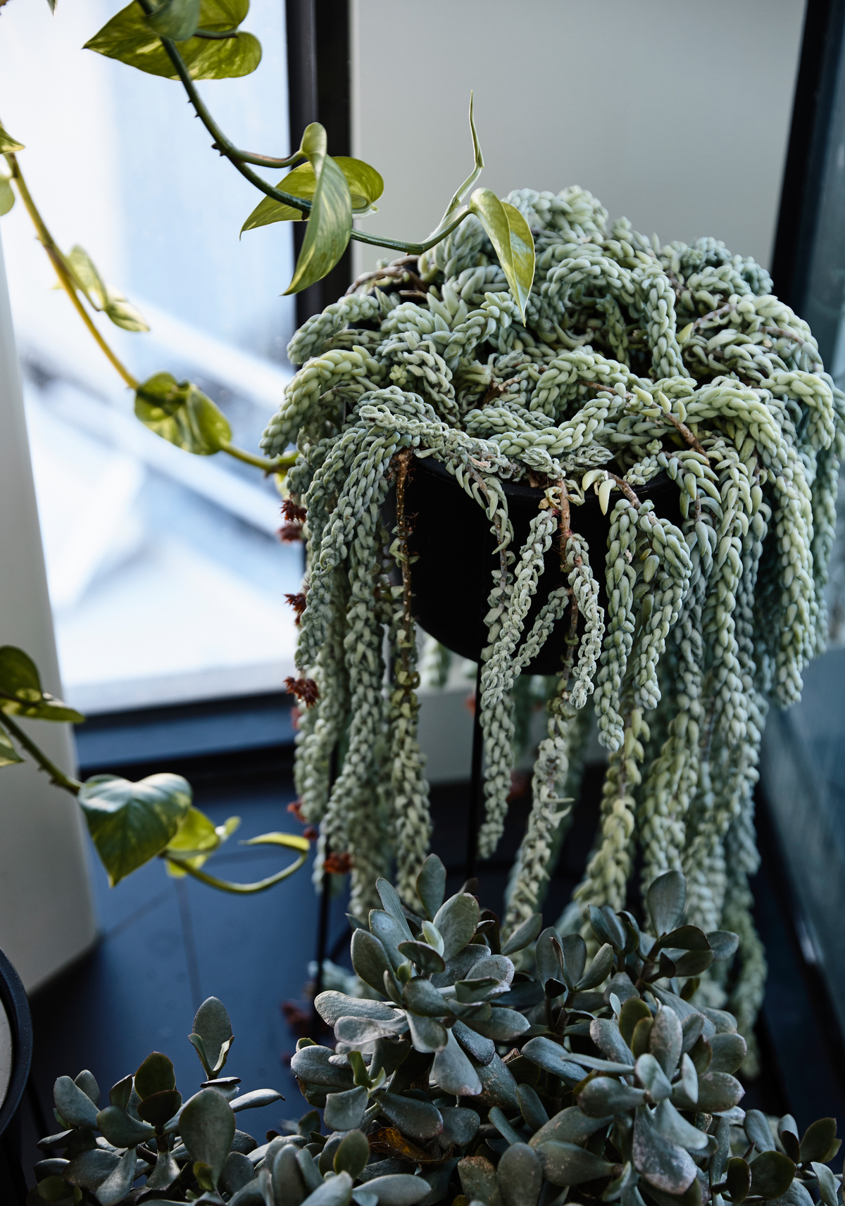 Colour and detail in art and an abundance of indoor plants punctuate the strictly monochrome fitout and fabric palette.