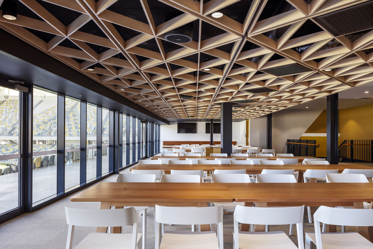 The Cox Architecture design delivered a building of its place. In defining a sense of place for the stadium, the COX Architecture team worked closely from the local context. Critical to the success of modern stadia, and essential to regional stadia, is a sense of identity.