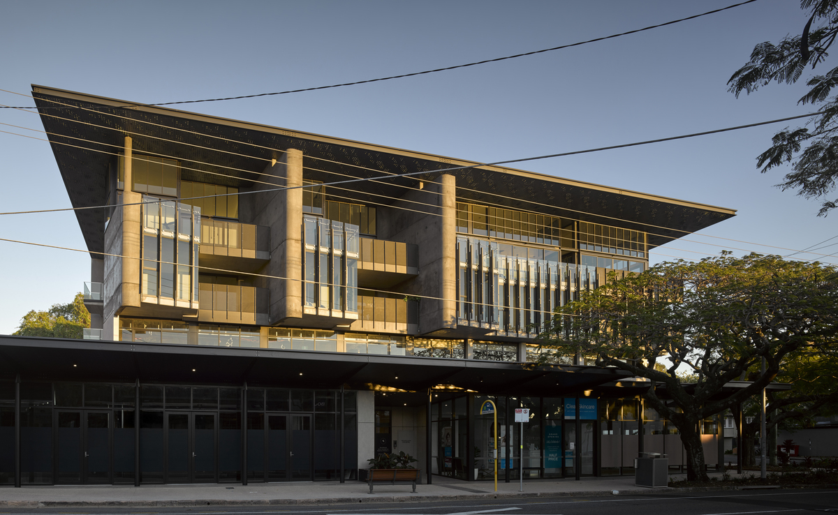 The design is purposely organic in nature, with soft rounded corners and in a colour assimilating with the aging tree topography of Poincianas and Jacarandas.
