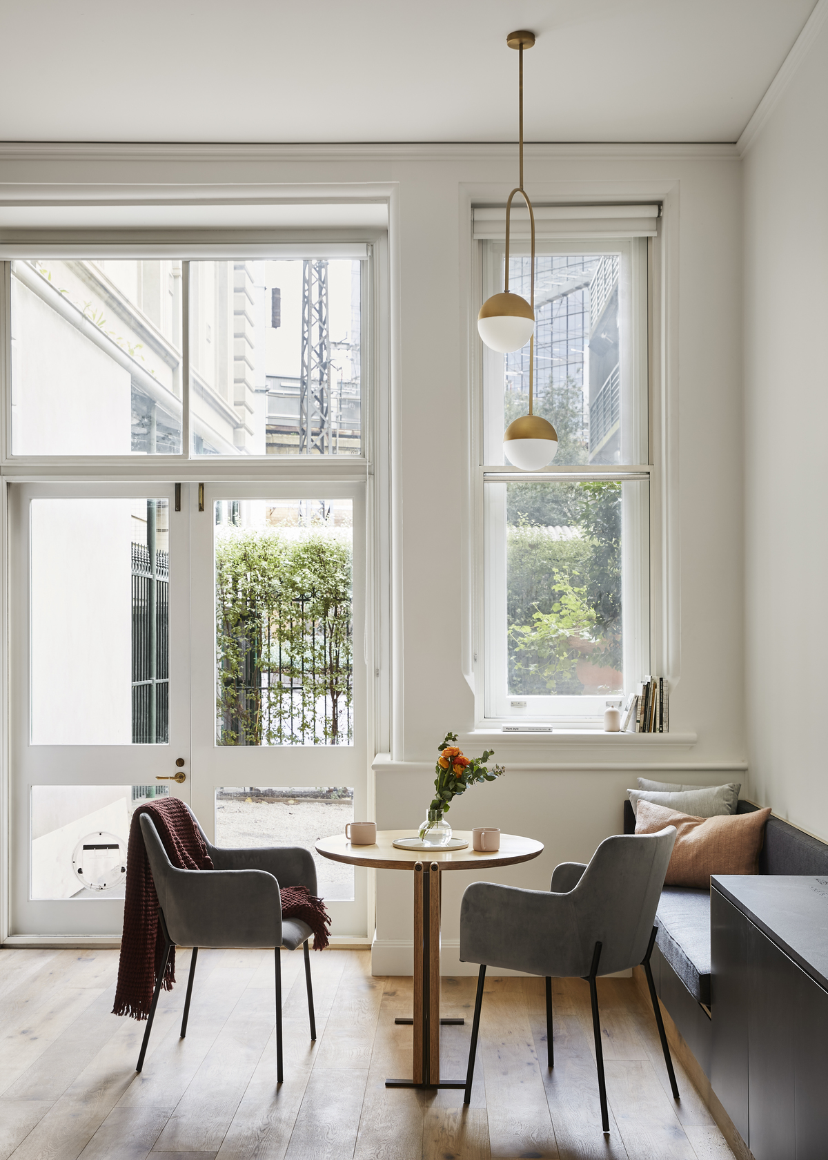 This ample new space allowed for flexible furniture configuration and garden views from their award-winning Drop Leaf Table, custom designed for this apartment.