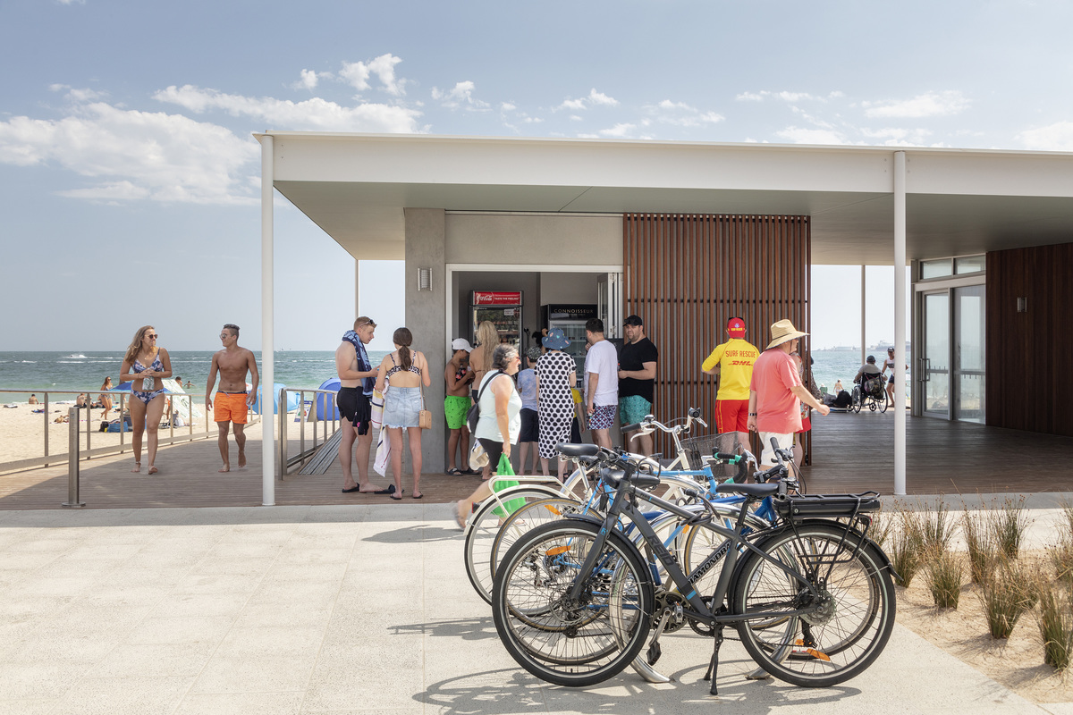 Both Beaconsfield Parade and the beach promenade are primarily concerned with pedestrian, cycling and vehicular movement, which prompted the built form to capture and celebrate this dynamic flow and the horizon line beyond.