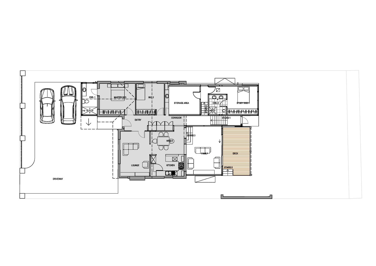 New living areas open onto landscaped surrounds and a new cantilevered study makes one feel suspended in nature.