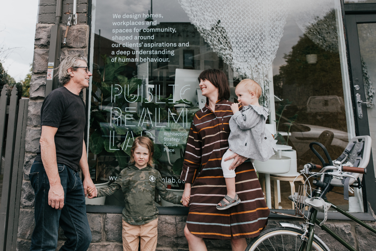 Like many small businesses, the Public Realm Lab architectural practice got started at a kitchen table, took over the dining room, then commanded the backyard with a little studio.
