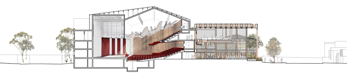 The existing flat floor will be transformed into a more immersive tiered seating arrangement and all acoustics, accessibility, and back-of-house functions revitalised to provide a venue with broad appeal for audiences and performers alike.