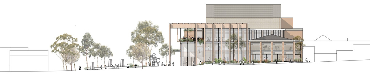 They propose to retain the existing black box space and administration building and re-purpose it to be a café, theatre bar, and foyer on the Ground Floor and a multi-purpose community room and rehearsal space on Level 1.