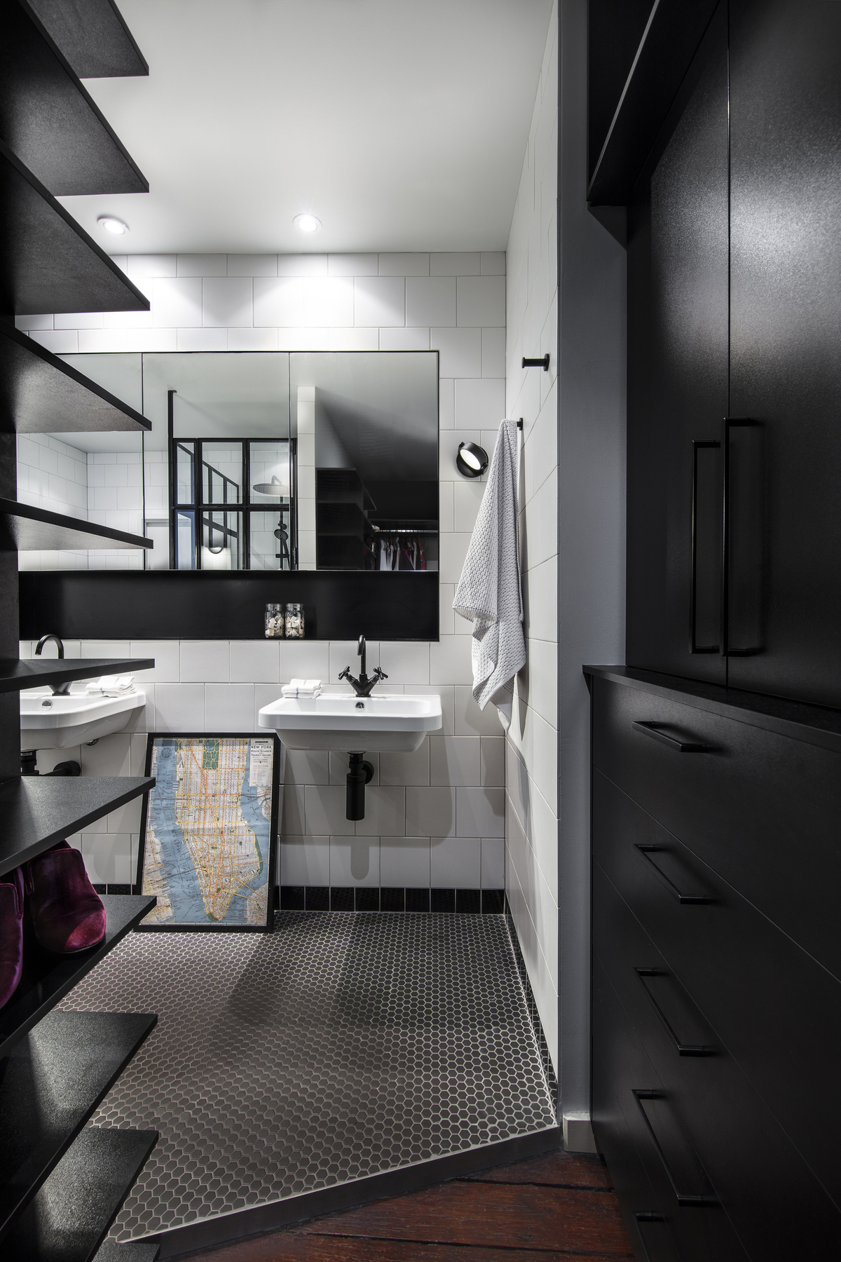 The unadorned, heightened, and industrial space allowed for an honest interior that placed emphasis on its strong and dynamic architectural features: original oak flooring, exposed wood and steel trussed, traditional brick, architectural ceiling details, and oversized sash windows.