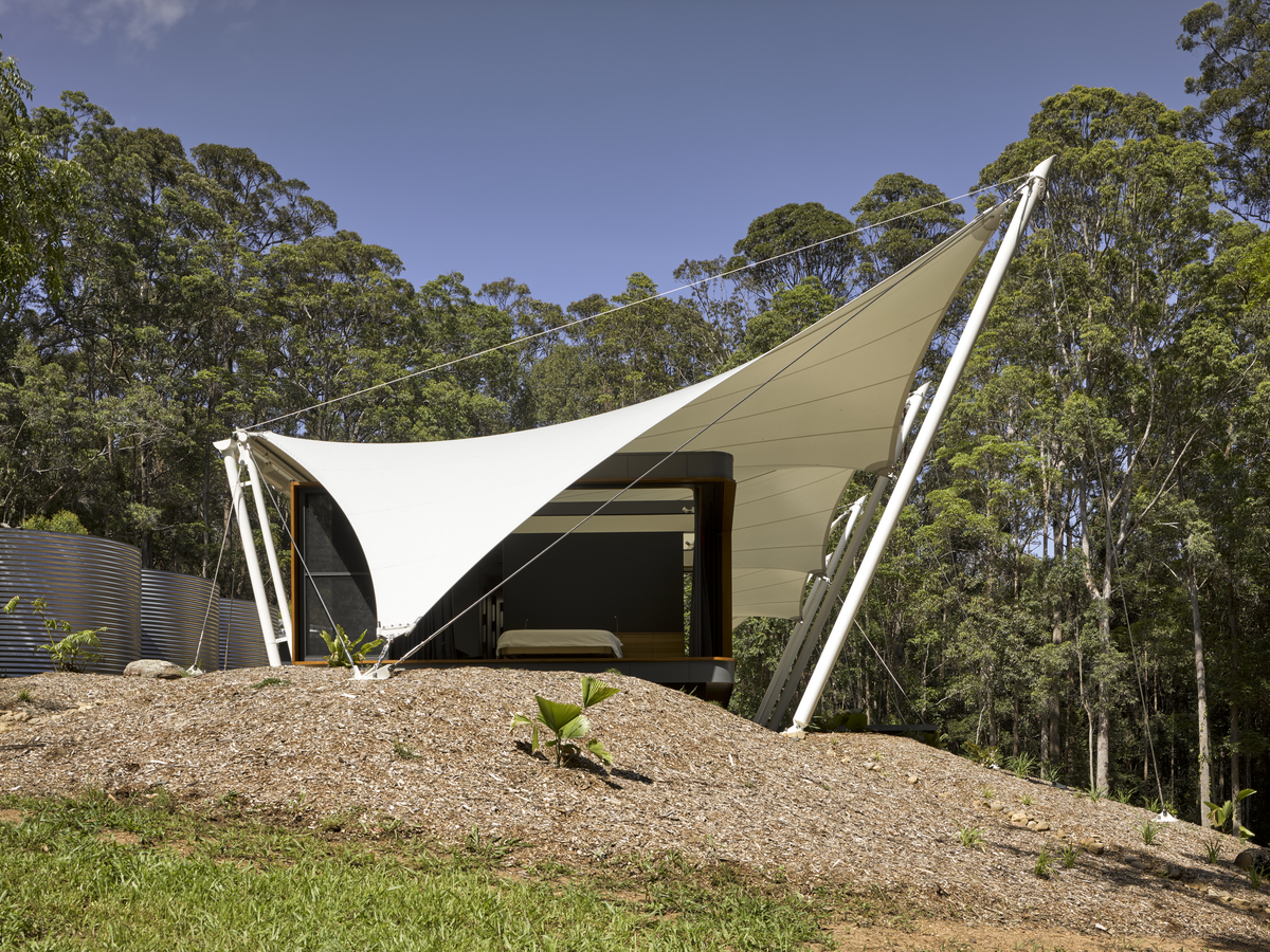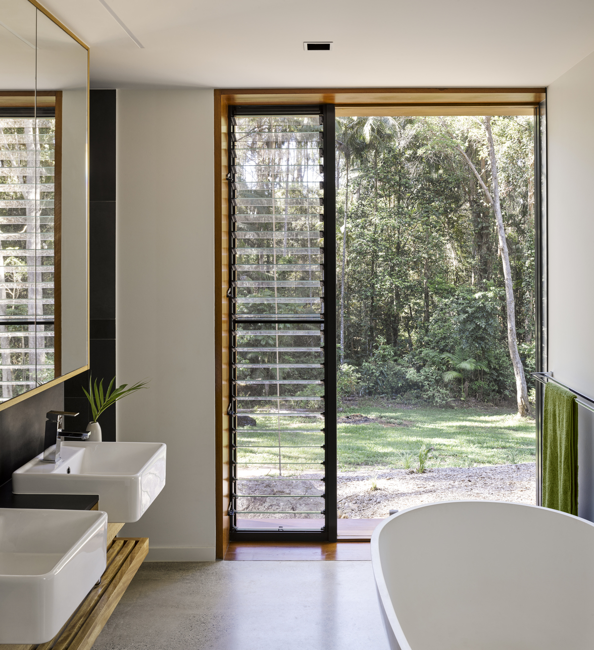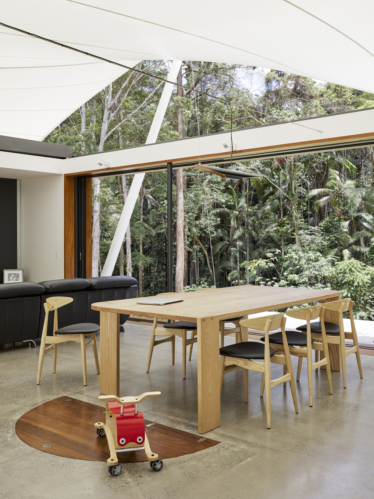 The pavilion running along the east-west contour allows all rooms to enjoy the rainforest view to the north maximizing winter solar gain.