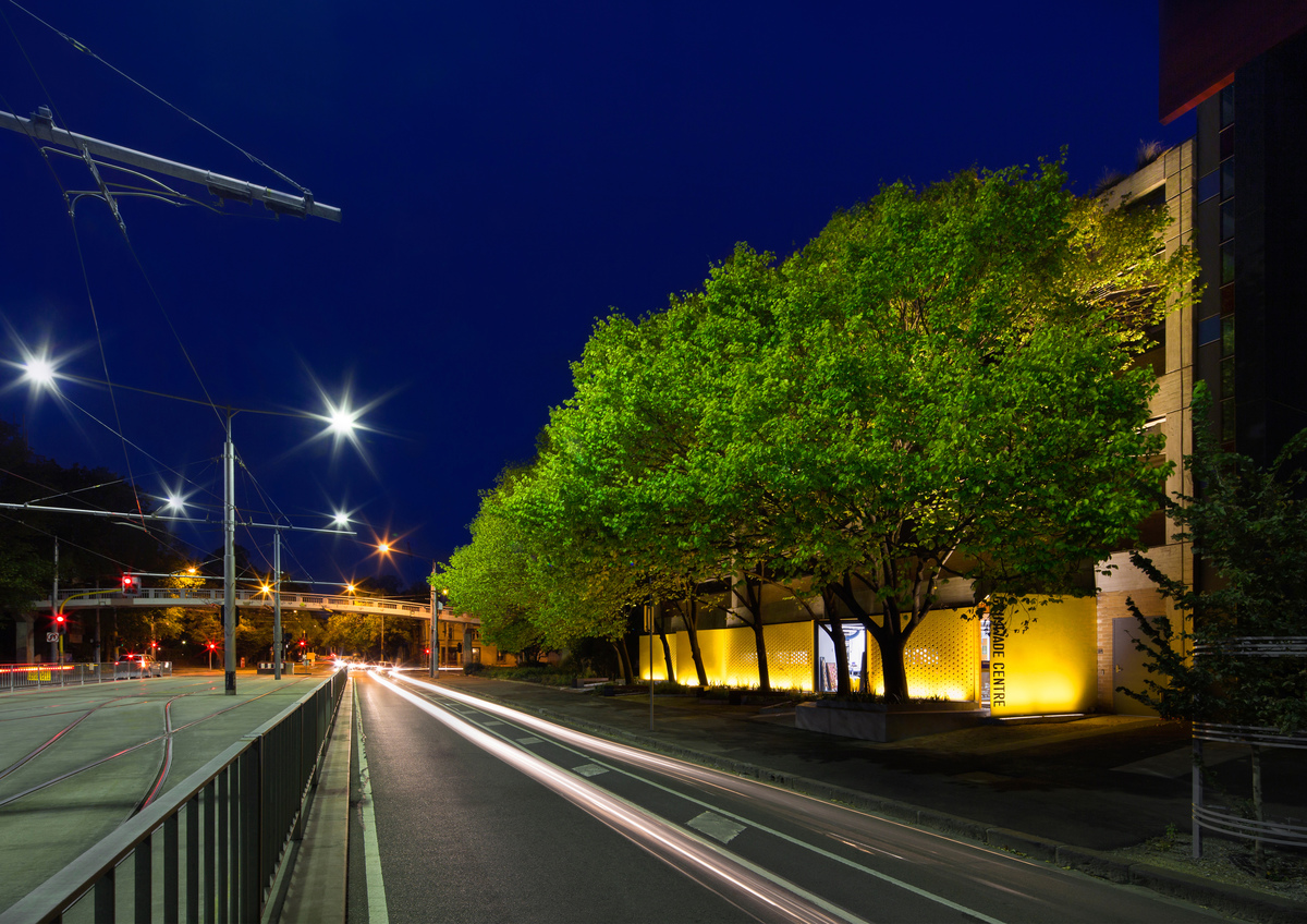 The facade creates an engaging intervention to Swanston Street opposite the Ian Potter Museum of Art.