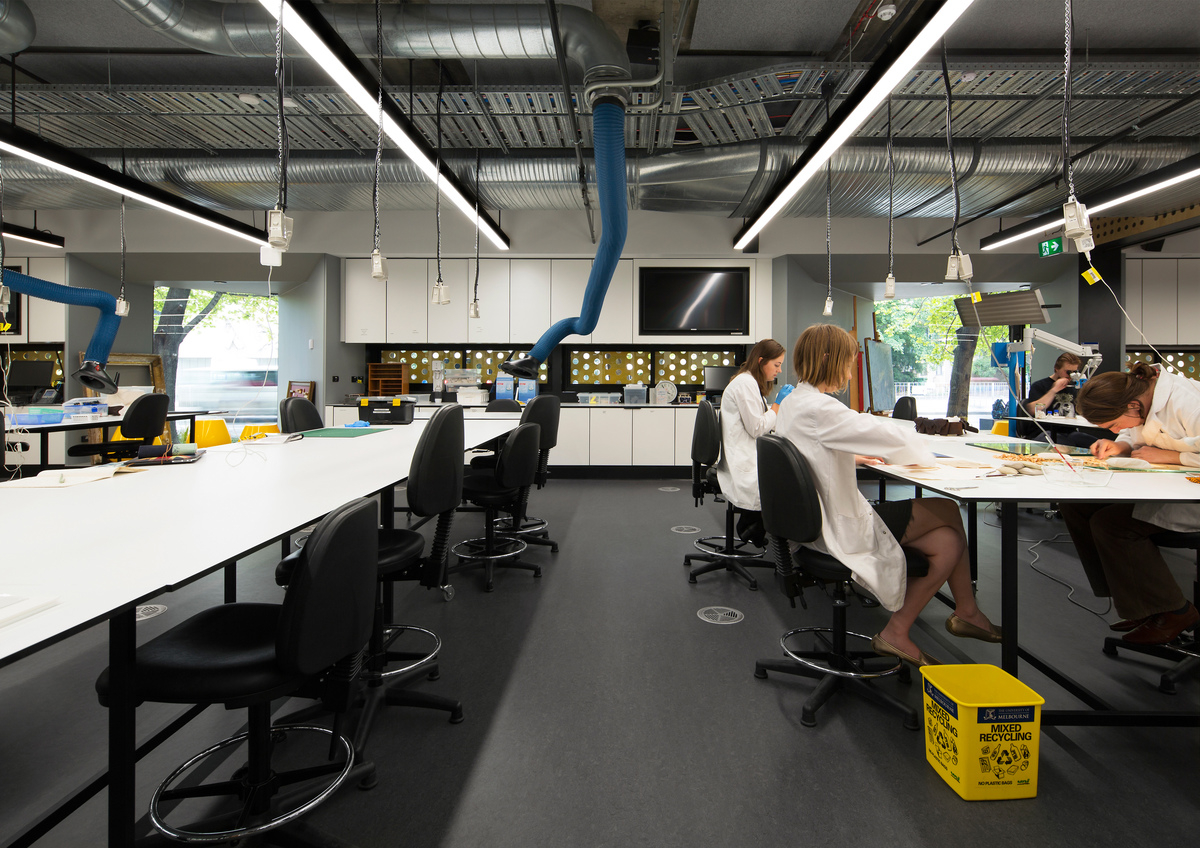 The Centre includes flexible undergraduate teaching laboratories, postgraduate research laboratories, specialist storage spaces, exhibition entry, staff administration offices and meeting rooms.