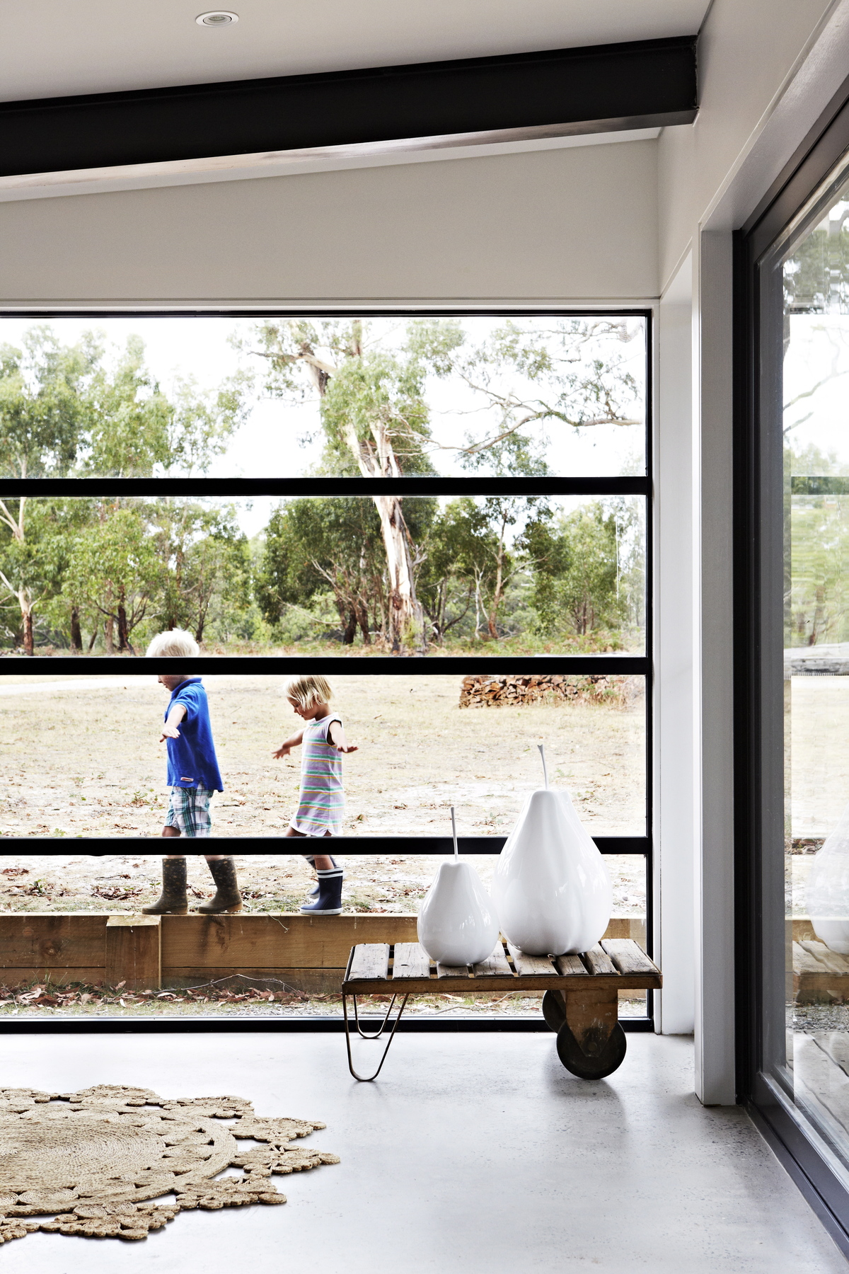 In contrast to this, the other aspect has a full building length of glazing orientated towards the bush outlook, grazing kangaroos and sunsets.