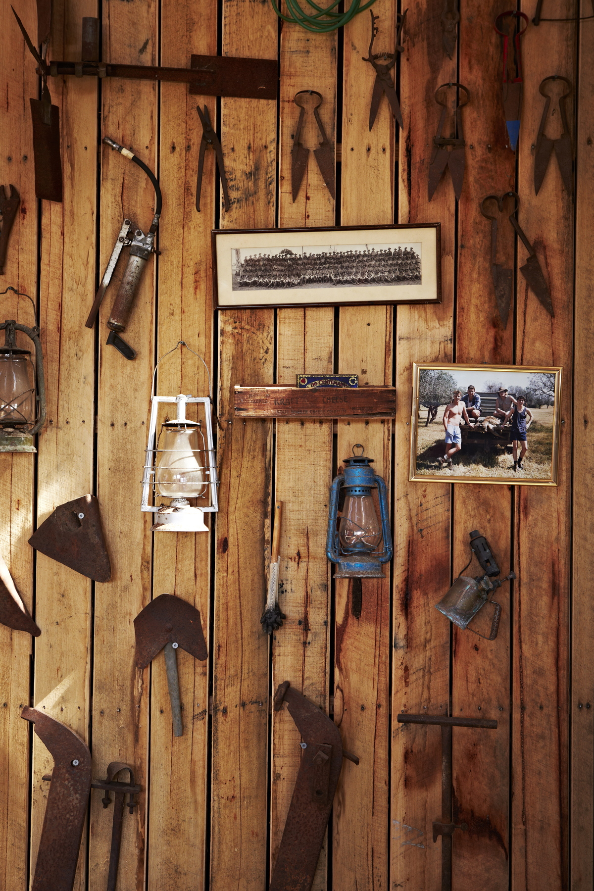 The client also created an amazing “display wall” inside the shed, made up of old farming equipment and tools that was owned by his grandfather and is a tribute to him.