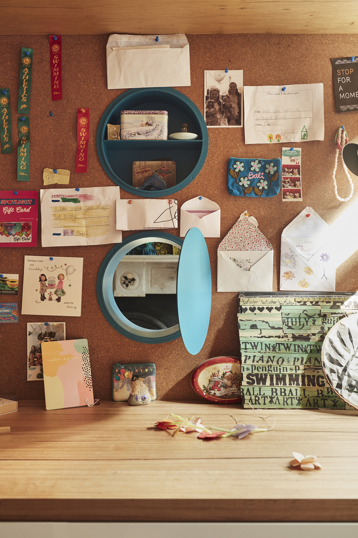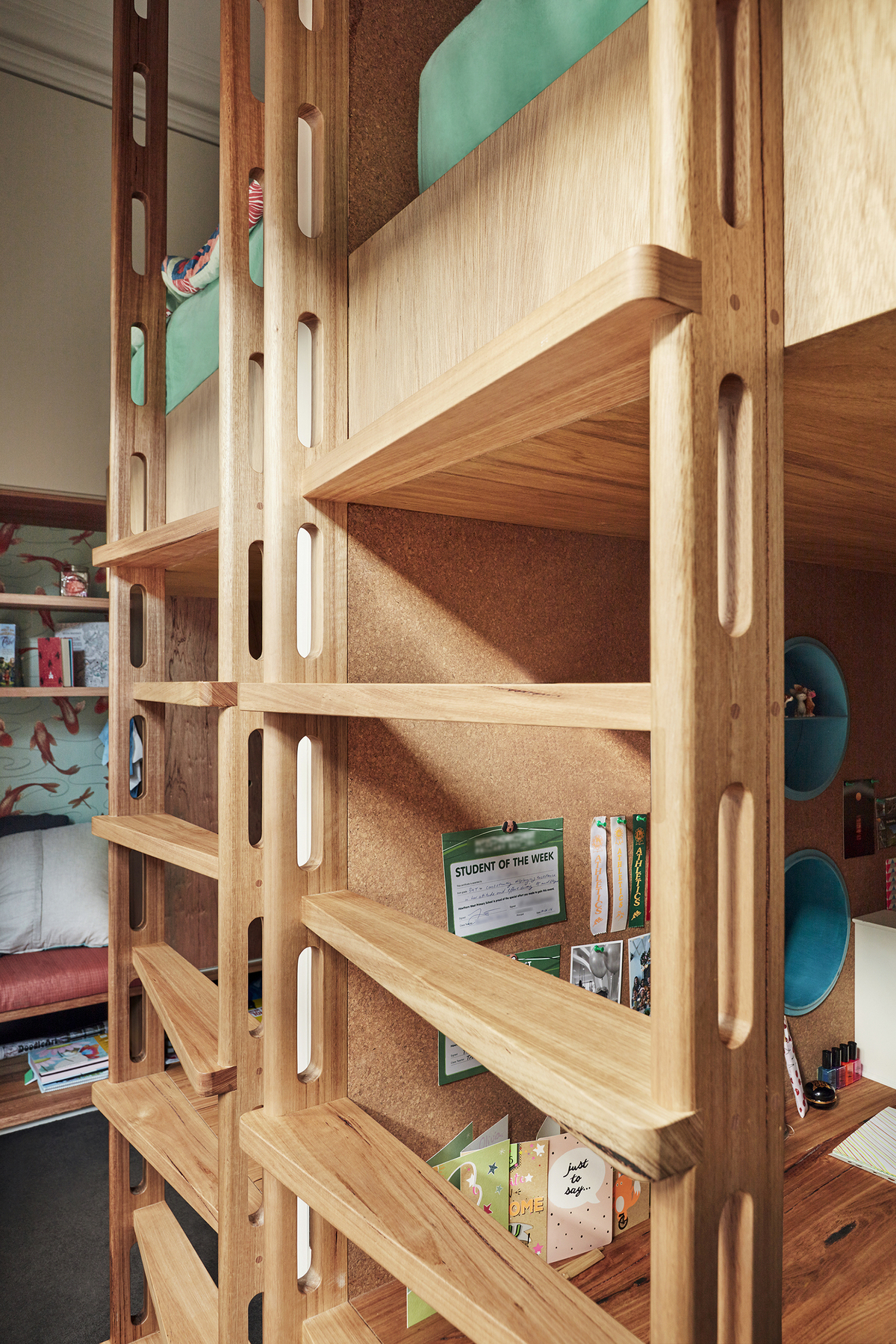 It’s got desks, shelves, beds, pin boards, and slots for sleepover mattresses.