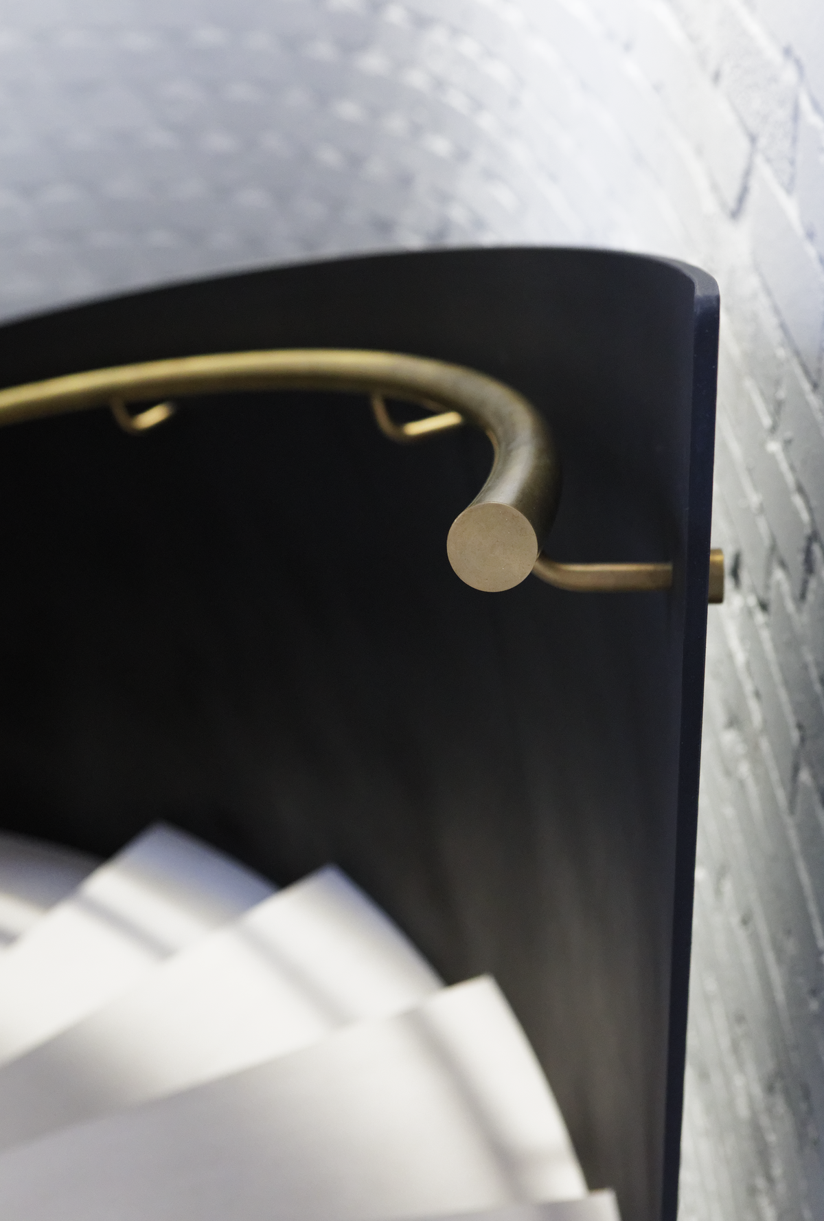 Brass is used as a highlight, adding depth and contrast: handrails, shadow-lines, door handles, light fittings – polished, brushed, knurled, and patinated.