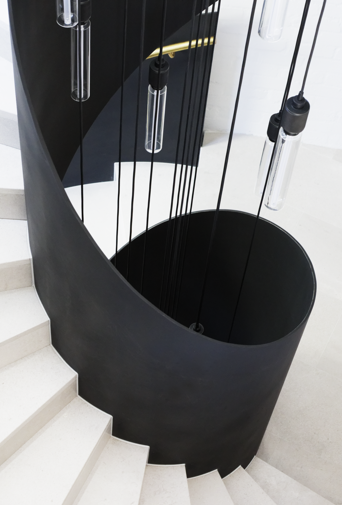 Brass is used as a highlight throughout, adding depth and contrast: on handrails, shadowlines, door handles, light fittings – polished, brushed, knurled, patinated.