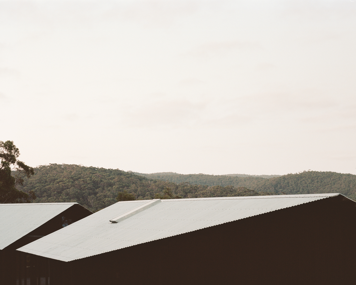 The simple roof, veranda, and cladding allow the building to sit easily in the landscape within the magical backdrop of the surrounding bush and hills.