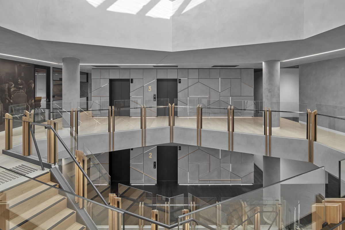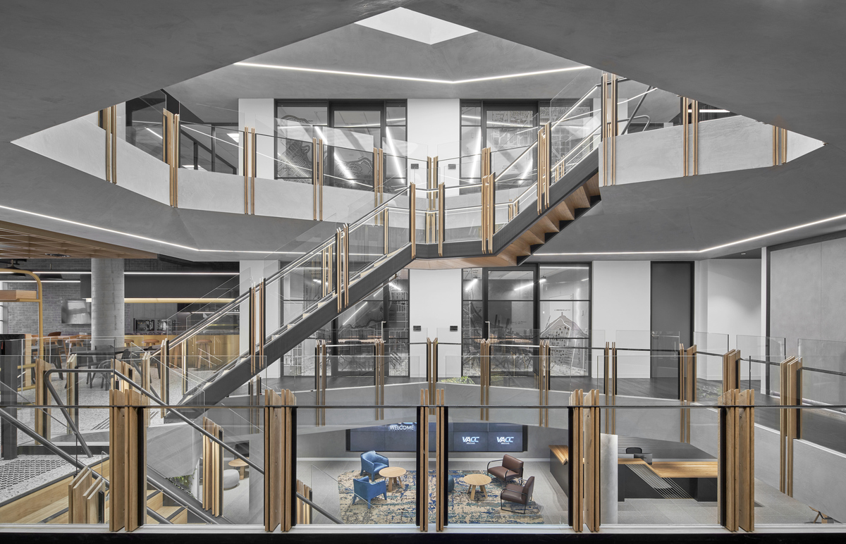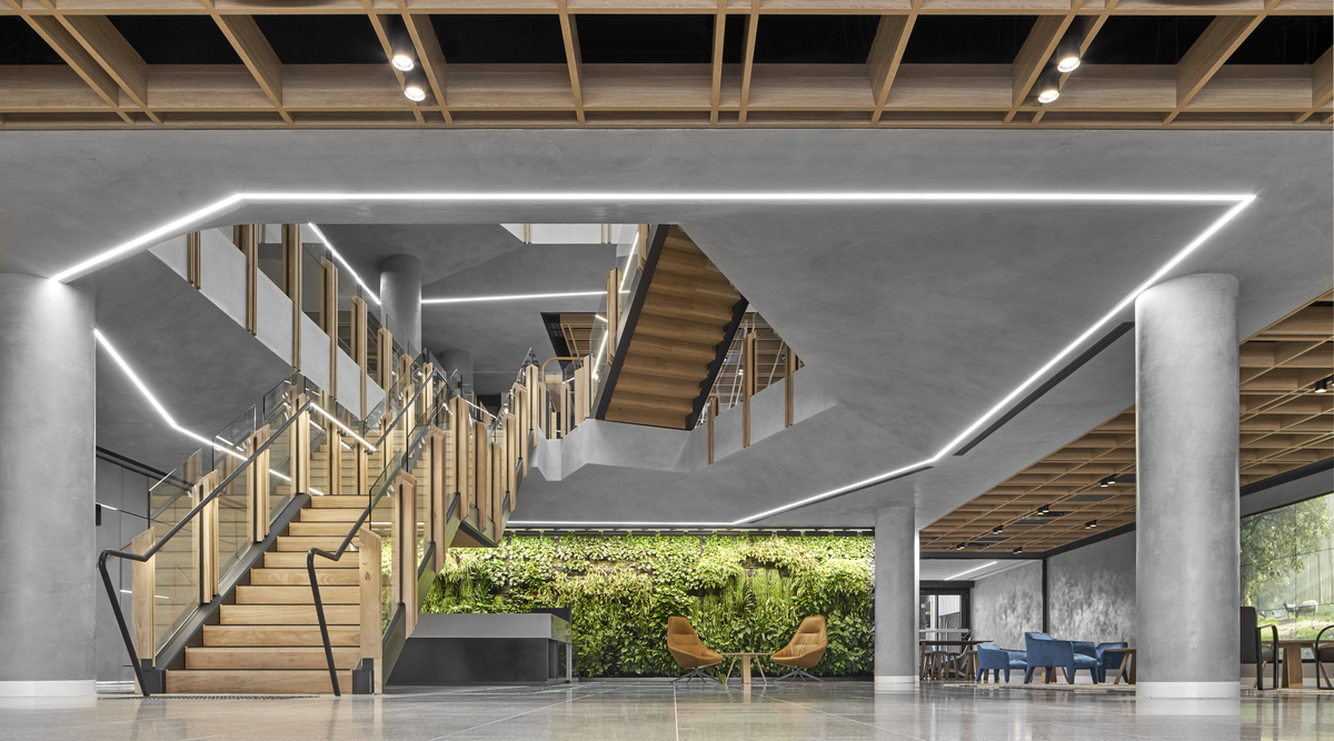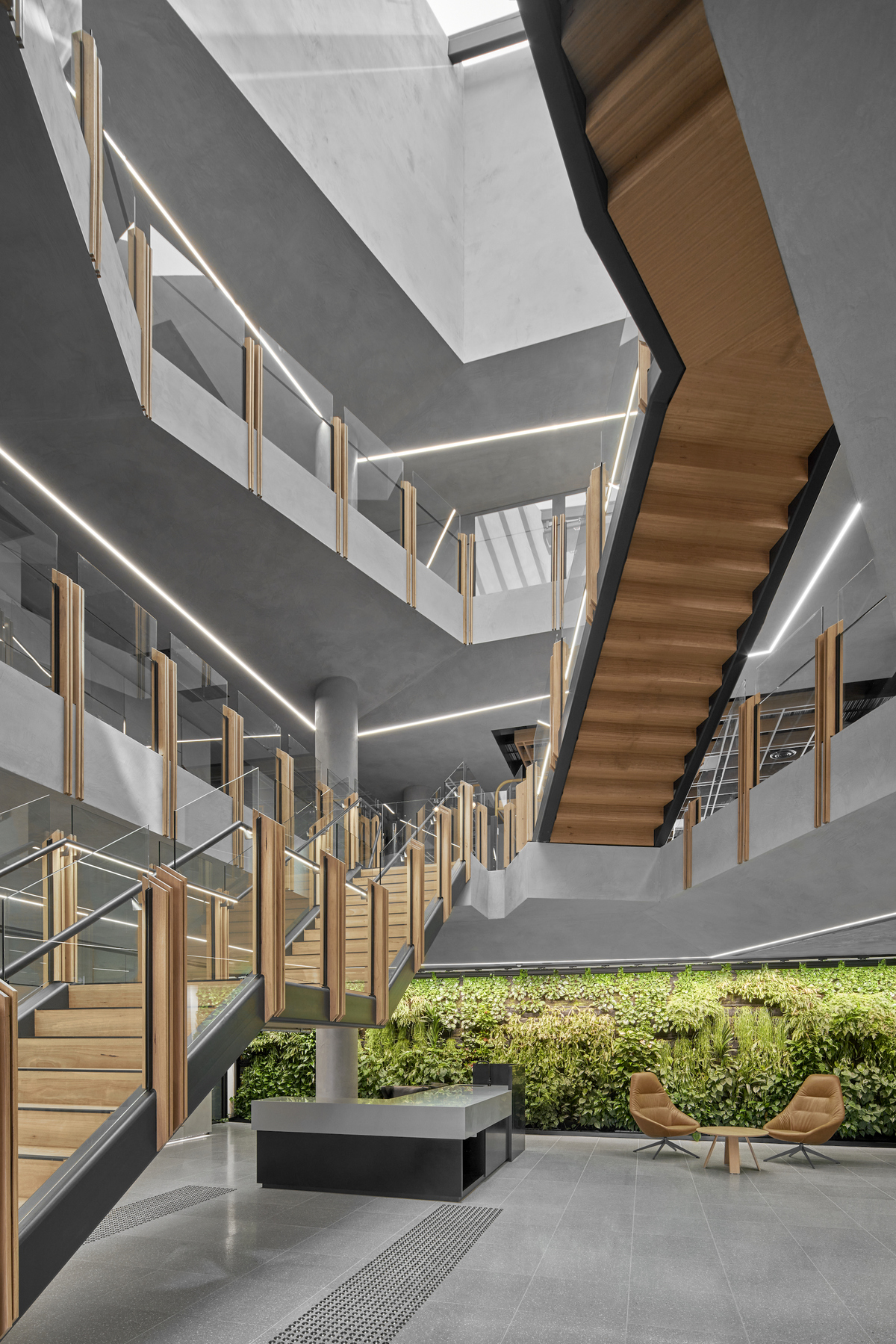 Inside a striking atrium rises through the building’s core to create a sense of grandeur upon arrival and invite abundant natural light into the building.