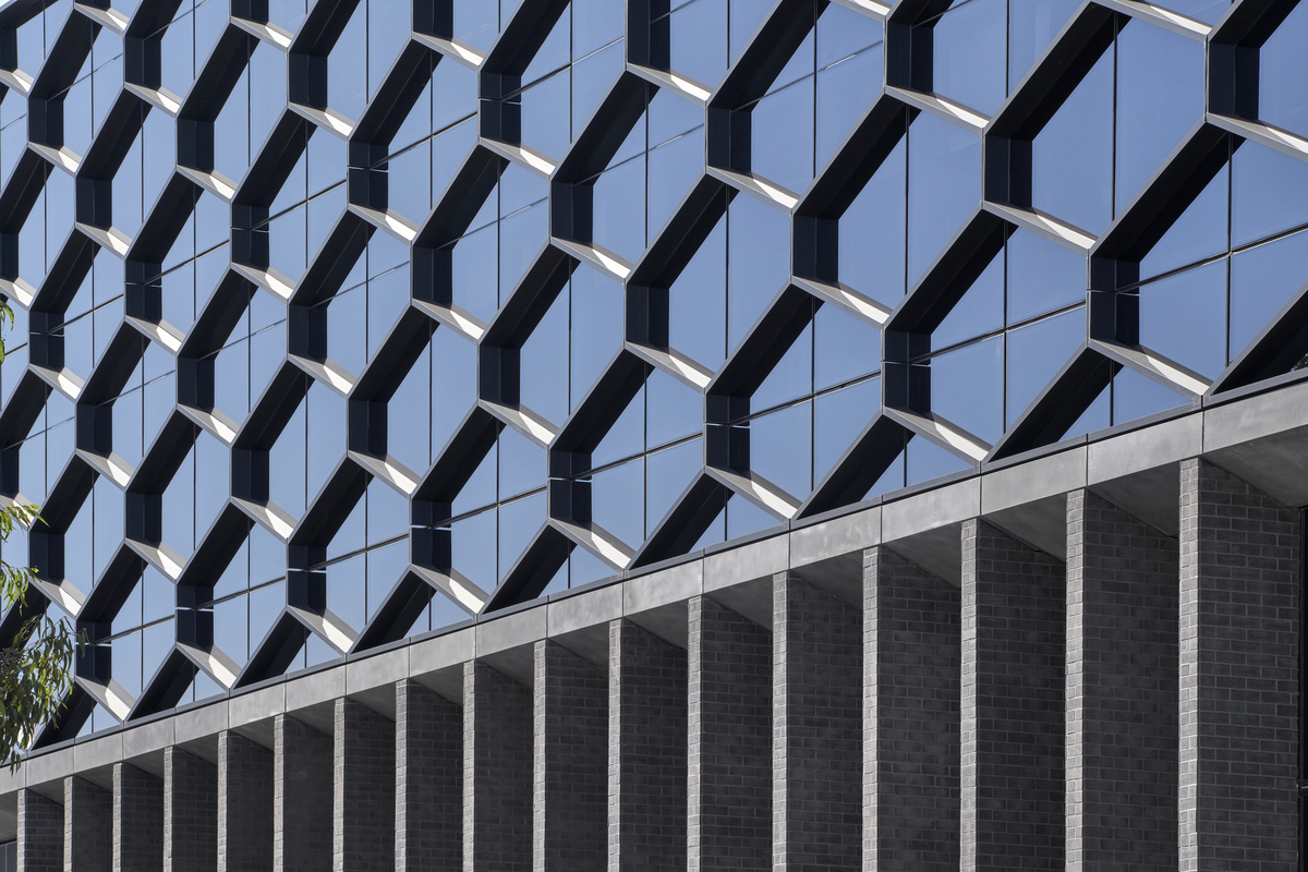 Subtle nods to the automotive industry are peppered throughout the building’s architecture, including a façade inspired by the grille of the classic Ford Mustang.