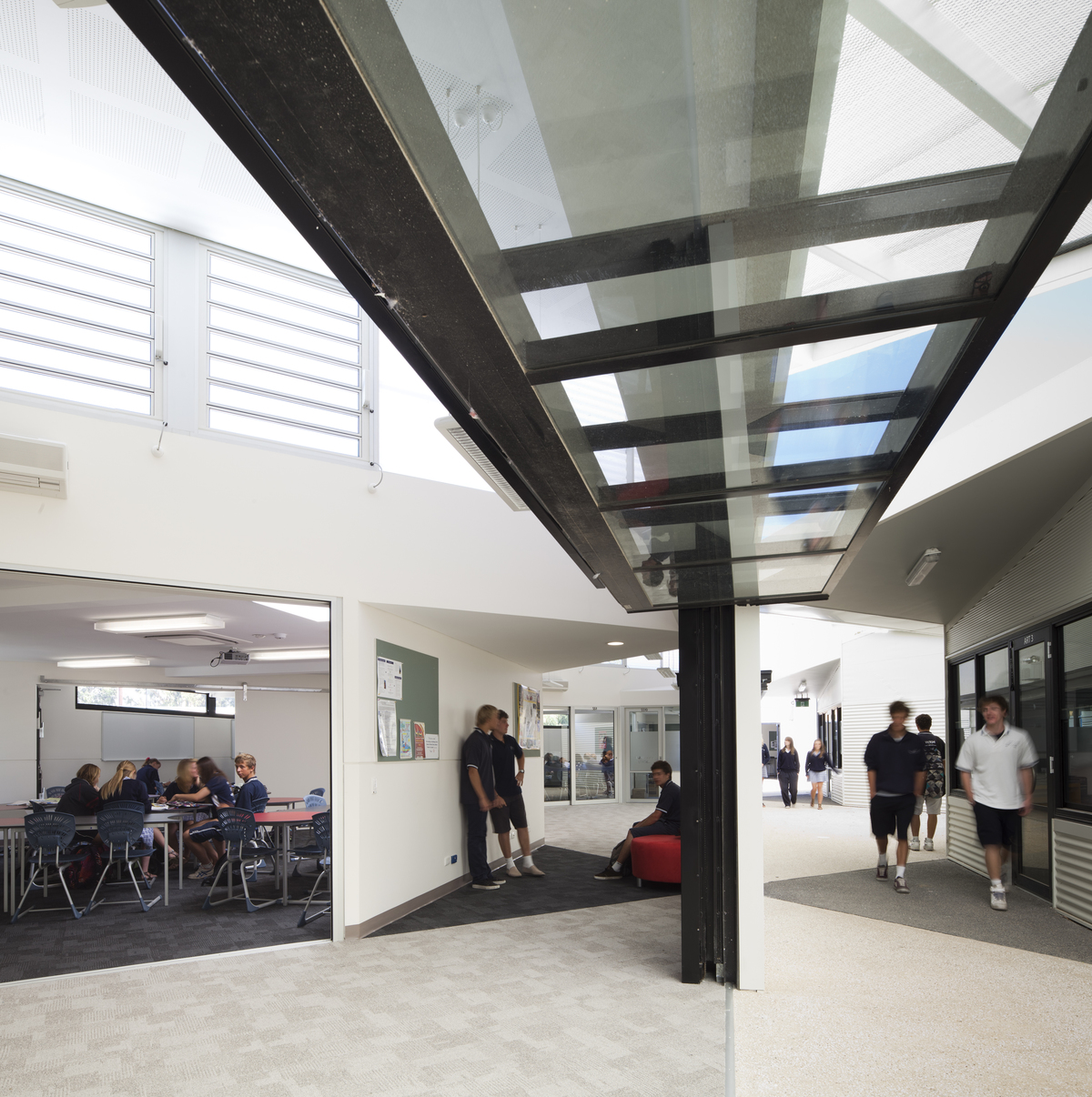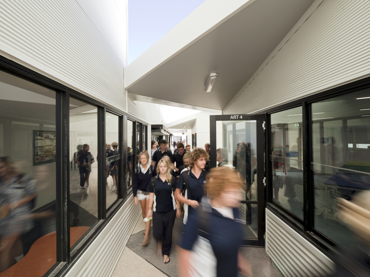 The function of the building and the layout relationship between the spaces, informs the overall design of the building. While essentially modular based, the different areas come together to form a single senior school campus encapsulating a series of internal courtyards. The integration of outside space, is designed as directly accessible and usable. It adjuncts to the internal learning environment.