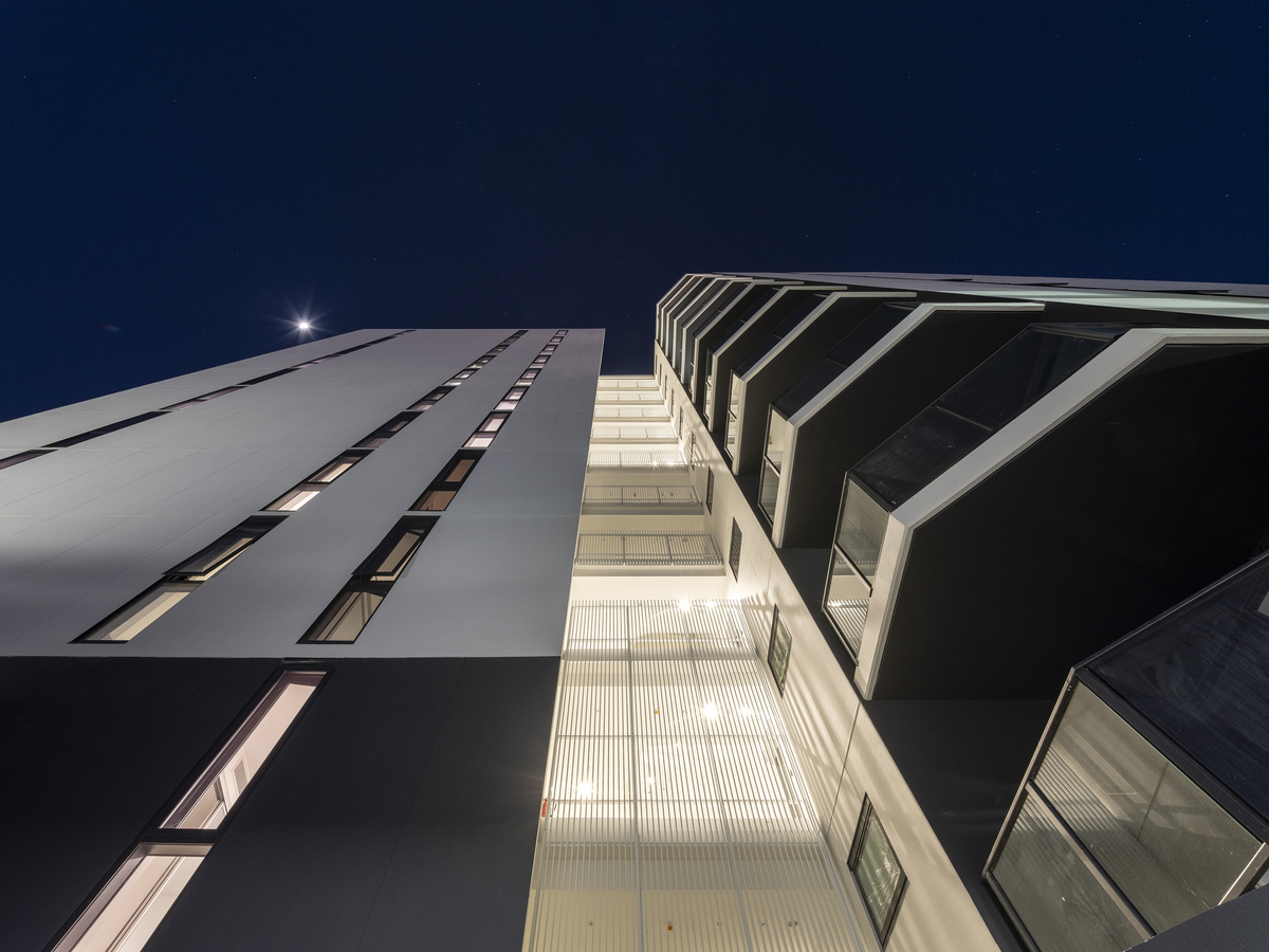 View is an architecture that encourages active use and focuses on resident well-being. It elevates the ritual of arriving and leaving home into the ceremonial.