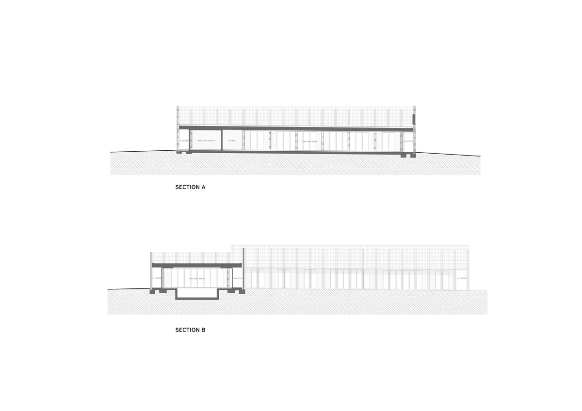 Built on the footprint of a carpark and a tennis court, fronting College Crescent, the L-shaped teaching building provides two main working spaces, with offices and ancillary rooms, all on one level.