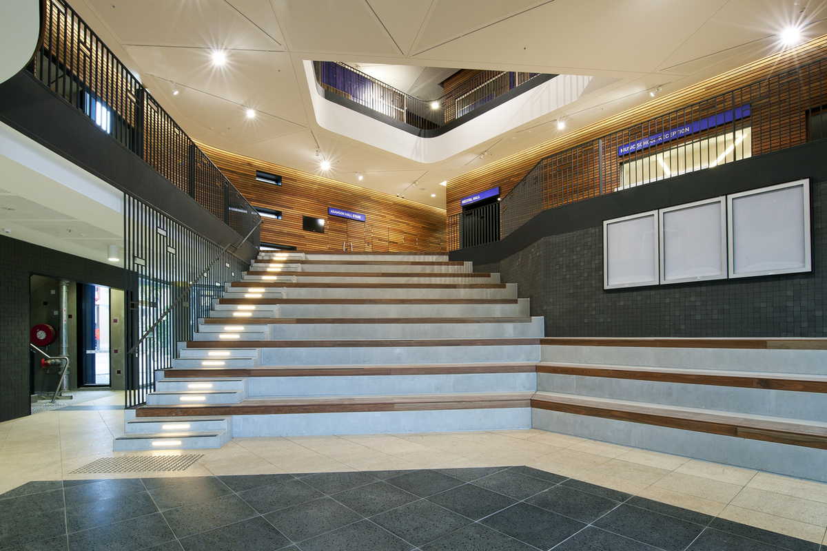 At the heart of the building, an exceptional space referred to as the ‘sound chamber’ features a grand stair that also functions as an engaging and flexible events platform.