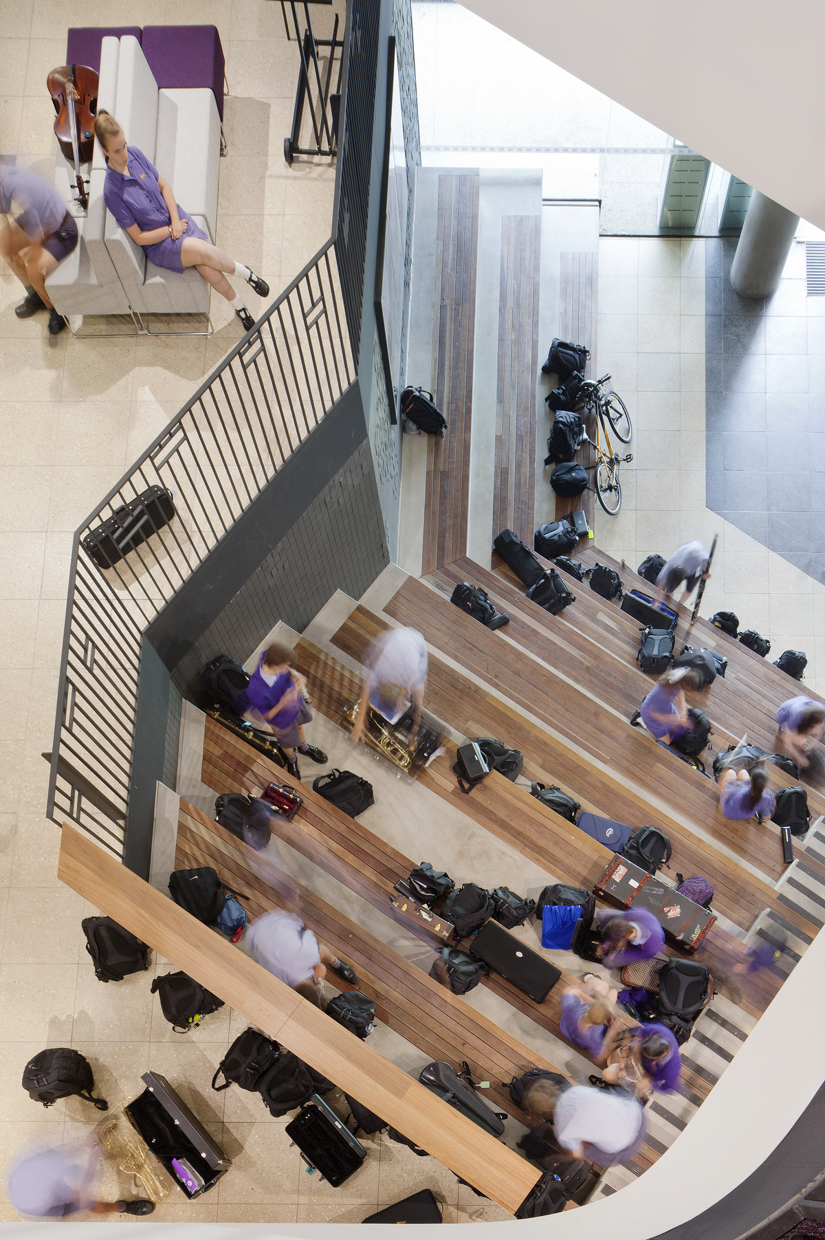 Offering exceptional facilities – with individual spaces for band rehearsals and recitals, as well as tuition studios, multi-purpose classrooms, and recording studios, the design of the building offers a network of spaces outside of formal classroom settings for collaboration and allied activities that stimulate interaction and the exchange of information.