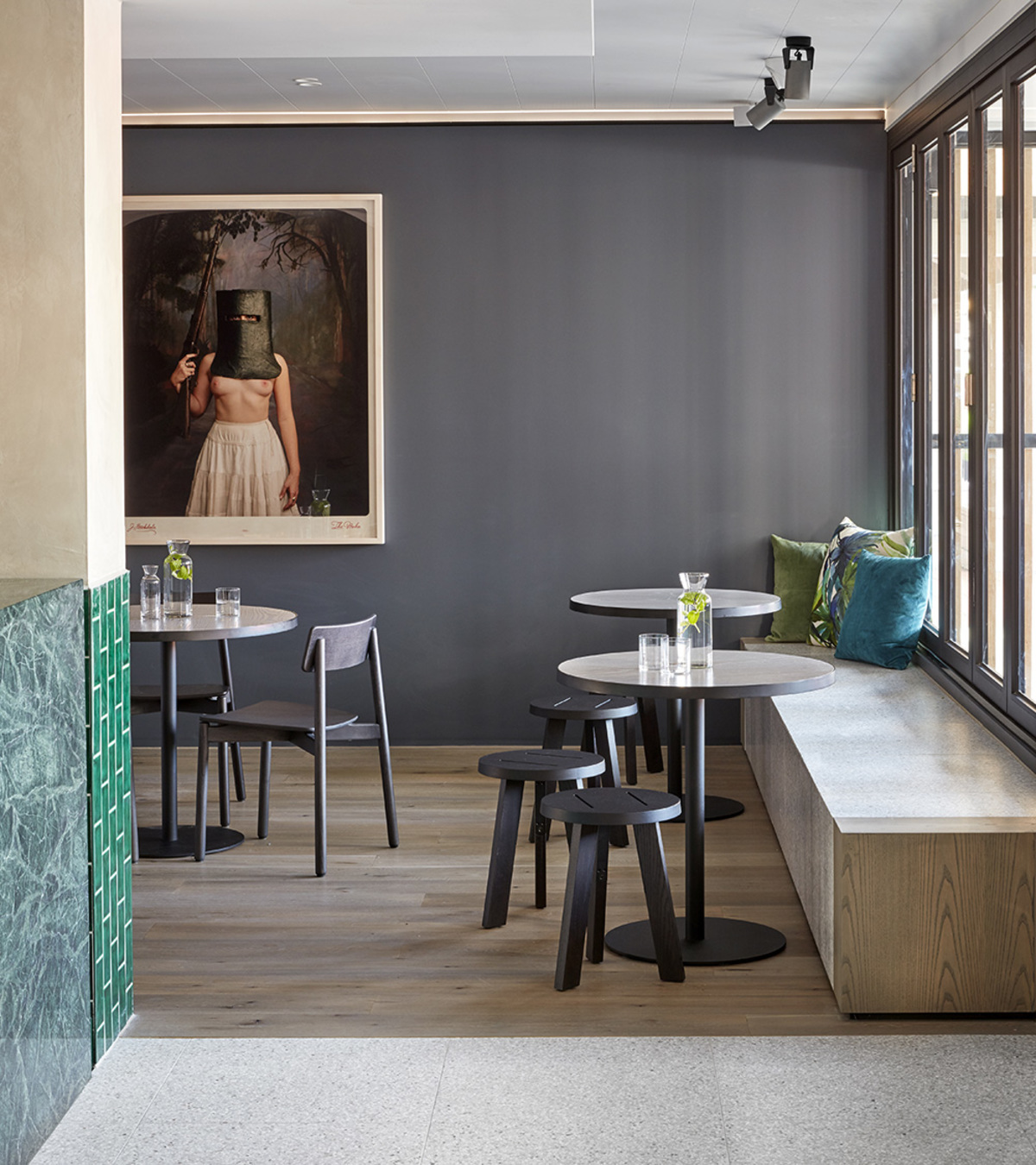 Kestie Lane Studio’s client wanted to create an interior that could accommodate a breakfast and lunch clientele as a light filled café and then transform to an evocative evening venue.