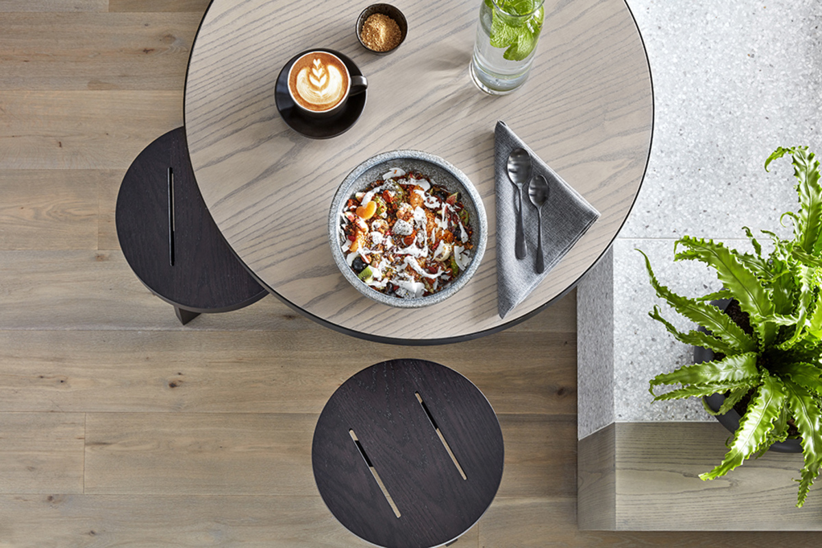Conceptually, creating a dining space that could transform throughout the day, and simultaneously be distinct from the market experience and blend seamlessly with its surrounds was key.