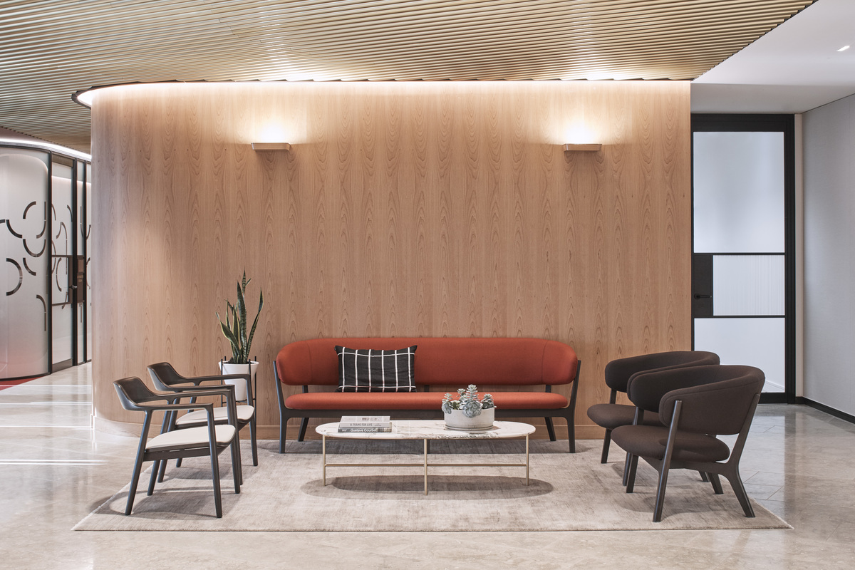 In the design development of the client area, the Hammond Studio team consulted with the CEO to discuss the proposed finishes.